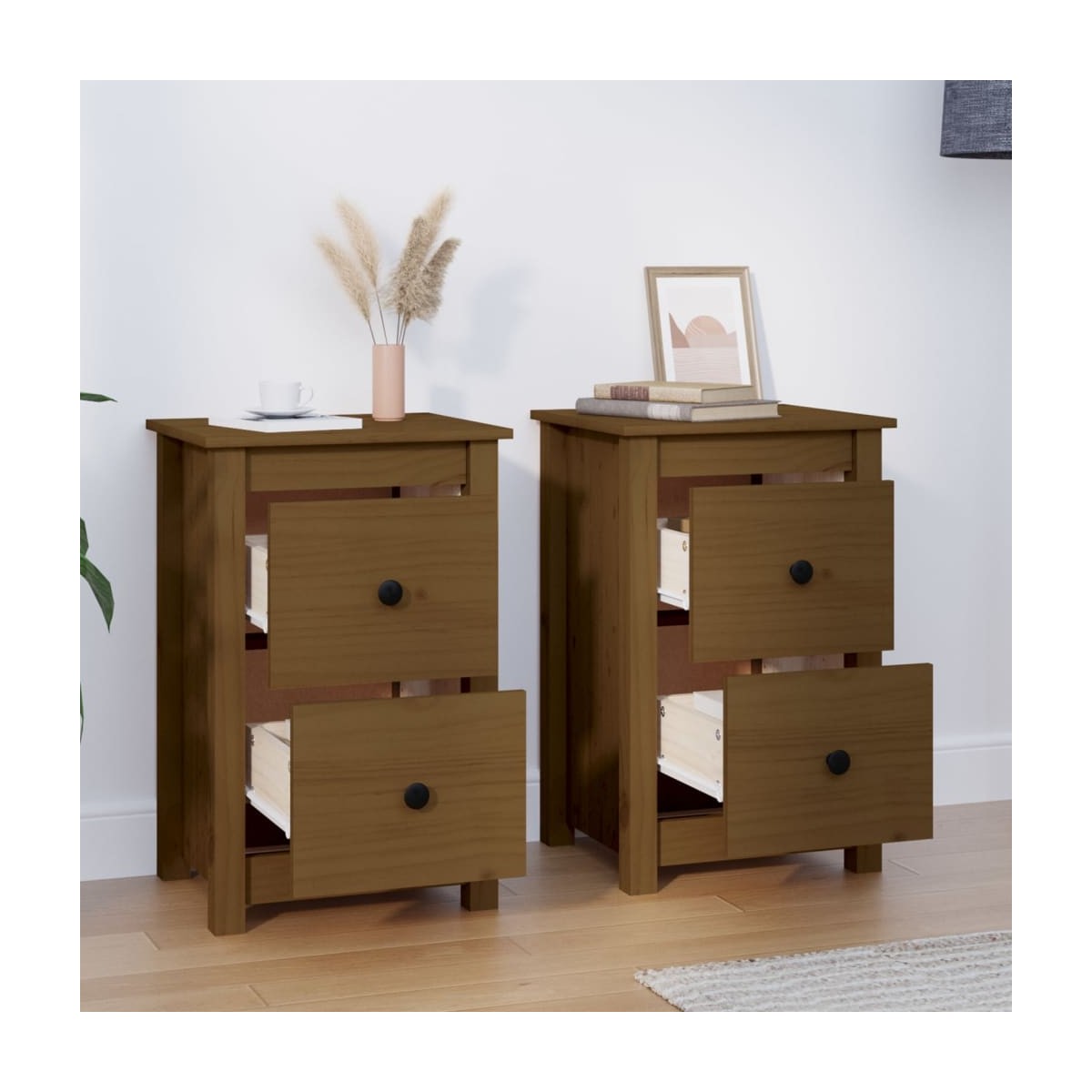 Estas clásicas mesitas de noche de madera con un diseño elegante son un complemento atemporal para la decoración de tu hogar. Madera de pino maciza: Estas mesitas de noche están hechas de madera de pino maciza. La madera de pino maciza es un bonito material natural. La madera de pino tiene vetas rectas, y los nudos dan al material su distintivo aspecto rústico.Amplio espacio de almacenamiento: Estas mesillas de noche tienen cajones espaciosos, que proporcionan un amplio espacio de almacenamiento para guardar tus objetos pequeños bien organizados y a tu alcance.Superficie resistente: La robusta superficie de la mesilla de noche es ideal para colocar objetos decorativos, marcos de fotos o plantas. Advertencia:Para evitar el vuelco, este producto debe usarse con el dispositivo provisto para fijarlo a la pared. Nota:Cada producto viene con un manual de montaje en la caja para facilitar el montaje.