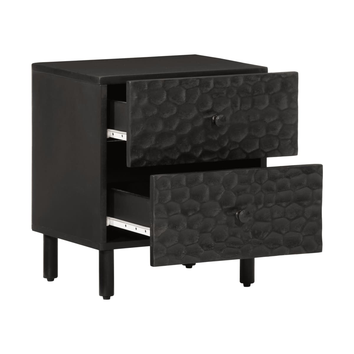 Estas mesitas de noche, con un diseño elegante, son un aporte atemporal para la decoración de tu hogar. Madera maciza de mango: La madera maciza de mango es una madera dura, tropical y resistente, que sirve para fabricar muebles robustos. Las bonitas vetas de la madera hacen que cada mueble sea ligeramente diferente al resto. Hecho de madera maciza de mango, el mueble es duradero y estable.Amplio espacio de almacenamiento: La mesita de noche está diseñada con 2 cajones para mantener las cosas organizadas y al alcance de la mano.Superficie estable: La superficie de este mueble auxiliar es perfecta para exponer objetos decorativos, marcos de fotos y plantas.Patas resistentes: Las patas de hierro aumentan la robustez y estabilidad de los muebles del dormitorio.
