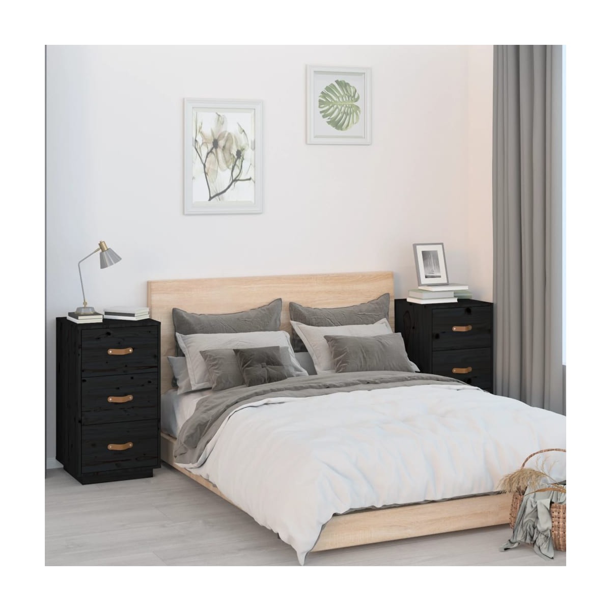 Un mueble esencial en cualquier dormitorio: ¡las mesitas de noche! Llévate estas mesitas de noche de madera a casa ahora mismo. Madera de pino maciza: La madera de pino maciza es un bonito material natural. La madera de pino tiene vetas rectas, y los nudos dan al material su distintivo aspecto rústico.Amplio espacio de almacenaje: La mesita de noche tiene tres cajones. Los espaciosos cajones te permiten tener las cosas organizadas.Mueble multiusos: La robusta superficie es ideal para exponer objetos decorativos, marcos de fotos o macetas. También se puede utilizar como mesa auxiliar, mesita, etc. Advertencia:Para evitar el vuelco, este producto debe usarse con el dispositivo provisto para fijarlo a la pared. Nota:Cada producto viene con un manual de montaje en la caja para facilitar el montaje.