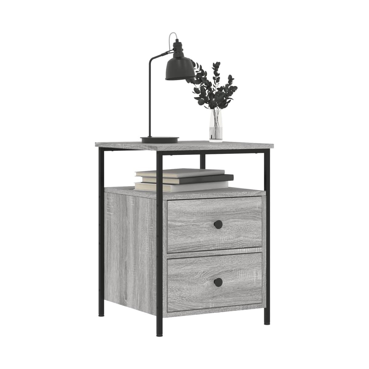 Estas mesitas de noche con un diseño industrial son un complemento atemporal para la decoración de la casa. Material duradero: La madera de ingeniería tiene una calidad excepcional, con una superficie lisa y también cuenta con fuerza, estabilidad y resistencia a la humedad.Estructura robusta: La estructura de hierro de la mesita de noche garantiza su solidez y estabilidad.Amplio espacio de almacenaje: La mesita de noche ofrece un amplio espacio de almacenaje para mantener tus artículos de uso diario bien organizados y al alcance.Patas regulables: El mueble auxiliar está equipado con 4 patas regulables que protegen el suelo de los arañazos y lo mantienen estable en suelo irregular.Función expositora: Puedes colocar tus fotos favoritas, adornos o flores en la superficie de esta mesita de noche para alegrarte la vida. Advertencia:Para evitar que vuelque, este producto debe usarse con el dispositivo de fijación a la pared incluido.