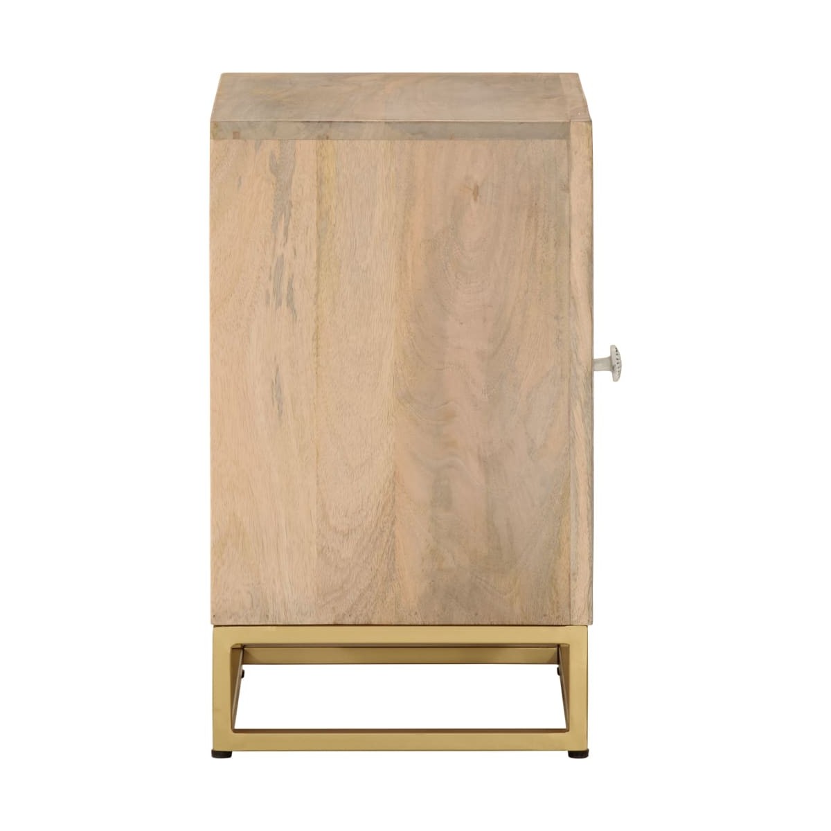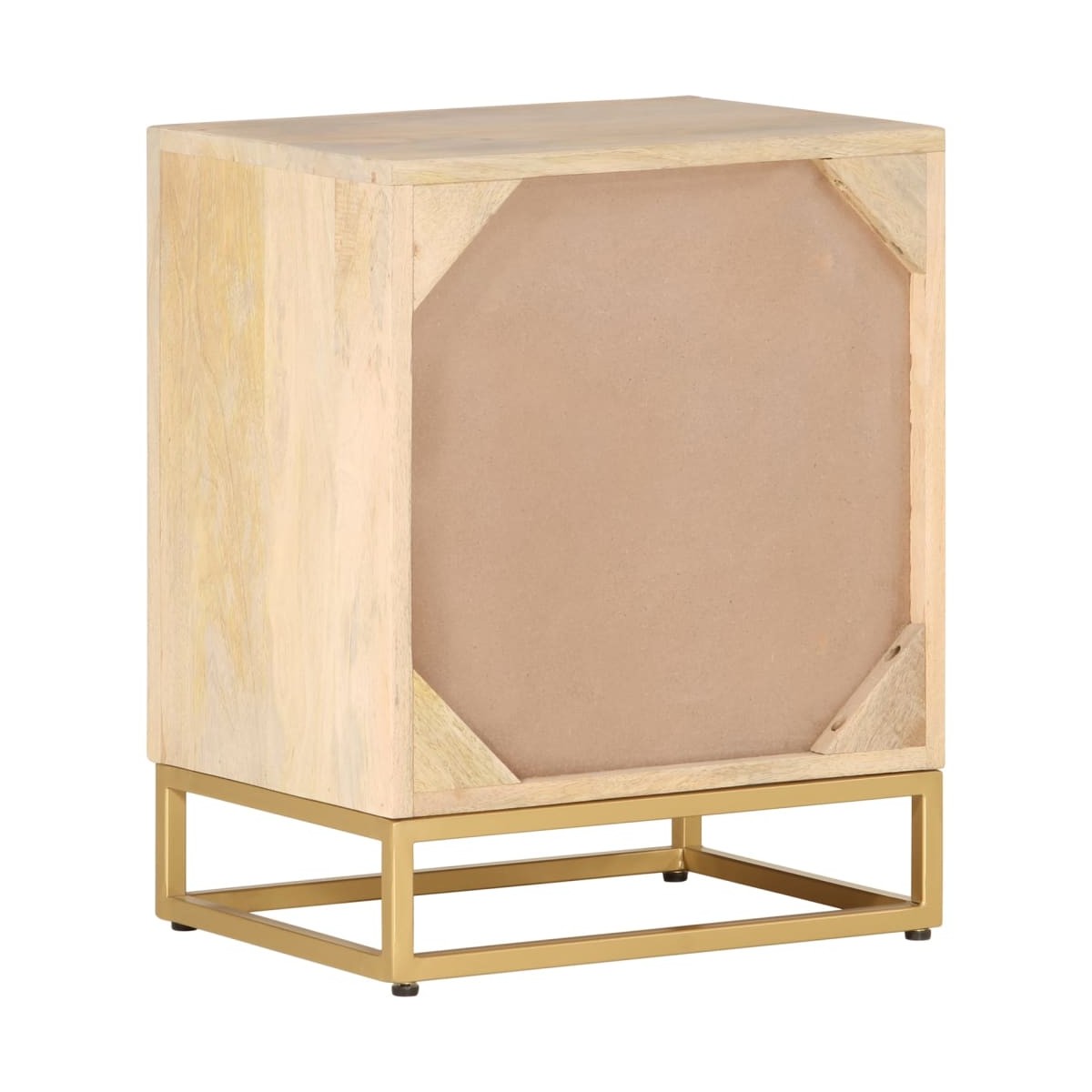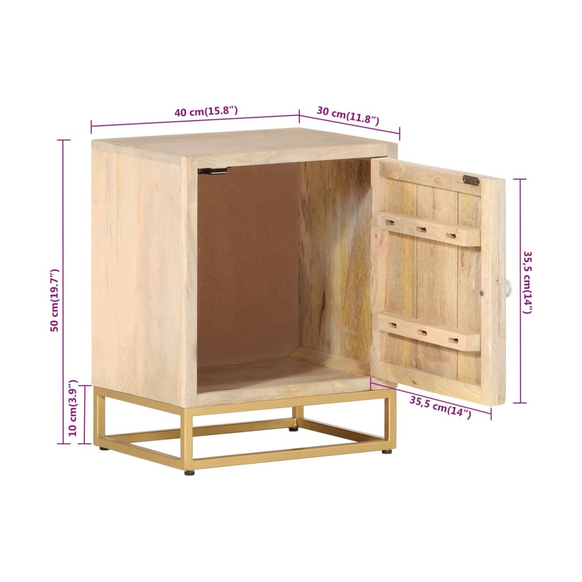 Esta mesita de noche, con un diseño elegante, es un aporte atemporal para la decoración de tu hogar. Madera maciza de mango: La madera maciza de mango es una madera dura, tropical y resistente, que sirve para fabricar muebles robustos. Las bonitas vetas de la madera hacen que cada mueble sea ligeramente diferente al resto. Hecho de madera maciza de mango, el mueble es duradero y estable. Amplio espacio de almacenaje: La mesita de noche ofrece un práctico espacio de almacenaje para mantener las cosas organizadas y al alcance de la mano. Superficie estable: La superficie de este mueble auxiliar es perfecta para exponer objetos decorativos, marcos de fotos y plantas. Patas resistentes: Las patas de hierro aumentan la robustez y estabilidad de los muebles del dormitorio. Advertencia:Para evitar que vuelque, este producto debe usarse con el dispositivo de fijación a la pared suministrado.
