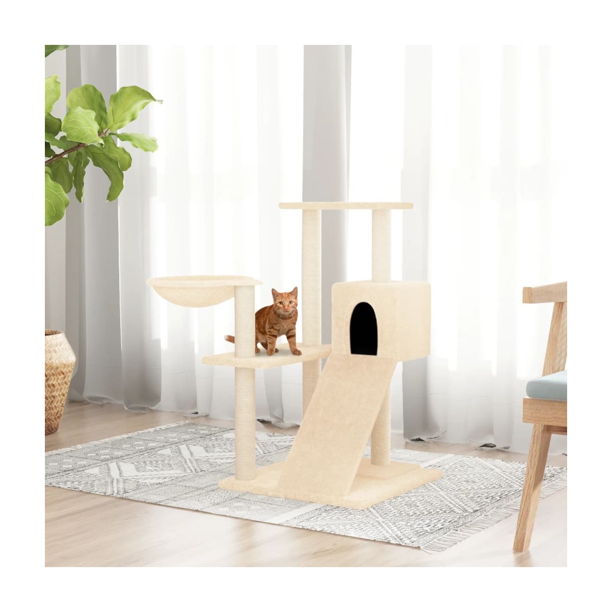 ¡Mantén entretenidos a tus adorables gatos sin parar con este rascador para gatos todo en uno! Torre para gatos todo en uno: El mueble para gatos con varios niveles está diseñado con 1 casa, 1 hamaca, 1 escalera y plataformas, por lo que proporciona un lugar perfecto para que tus gatos trepen, se posen, arañen, se escondan y también se relajen.Material de felpa suave: La felpa extragruesa y suave está bien ventilada, es resistente a los arañazos, comodísima y acogedora.Postes de sisal natural: Los resilientes y fuertes postes de sisal natural del árbol rascador son perfectos para que tus amados gatos satisfagan su instinto de arañar y evitar así que arañen los muebles Nota: La lona impermeable no está incluidaCada producto viene con un manual de montaje en la caja para facilitar el montaje.