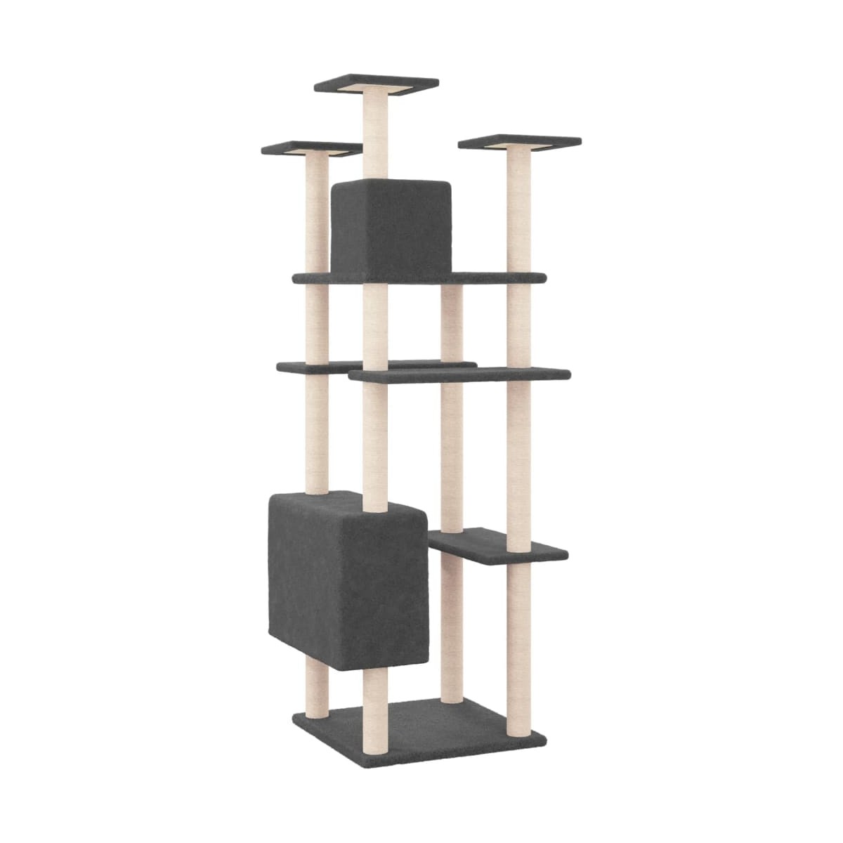 ¡Con este rascador para gatos, tus peludos amigos podrán disfrutar del lujo! Tus gatos disfrutarán arañando, trepando, posándose, escondiéndose y descansando en él. Torre para gatos todo en uno: La torre para rascar de gatos de varios niveles brinda a tu gato un lugar divertido y compacto para jugar, hacer ejercicio y una casa acogedora para echar una buena siesta. Cuenta con 2 casas y plataformas.Felpa cómoda: La cubierta de felpa esponjosa y agradable a la piel permite que tus amigos felinos jueguen con comodidad.Cuerda de sisal duradera: El poste de este centro de actividades para gatos está enrollado con una cuerda de sisal natural, lo que brinda a los gatos una salida saludable para rascarse. Nota: La lona impermeable no está incluidaCada producto viene con un manual de montaje en la caja para facilitar el montaje.