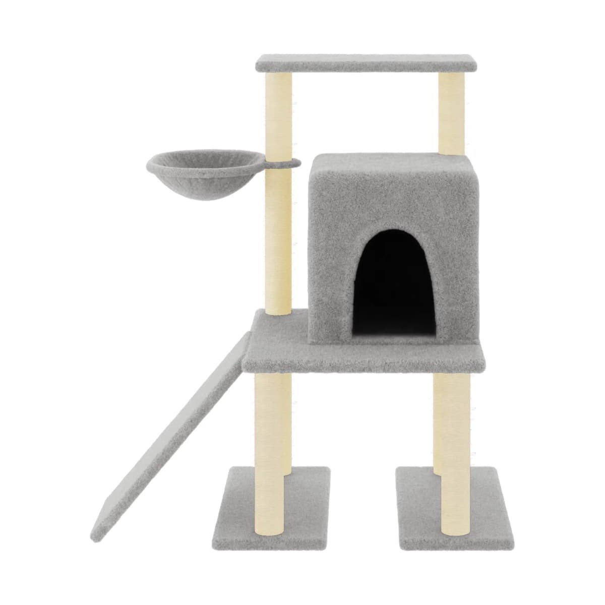 ¡Mantén entretenidos a tus adorables gatos sin parar con este rascador para gatos todo en uno! Torre para gatos todo en uno: El mueble para gatos de varios niveles está diseñado con una casa, una escalera, una cesta y una plataforma, que proporcionan un lugar perfecto para que los gatos trepen, se encaramen, arañen, se escondan y también se relajen.Material de felpa suave: La felpa extragruesa y suave está bien ventilada, es resistente a los arañazos, comodísima y acogedora.Postes de sisal natural: Los resilientes y fuertes postes de sisal natural del árbol rascador son perfectos para que tus amados gatos satisfagan su instinto de arañar y evitar así que arañen los muebles.