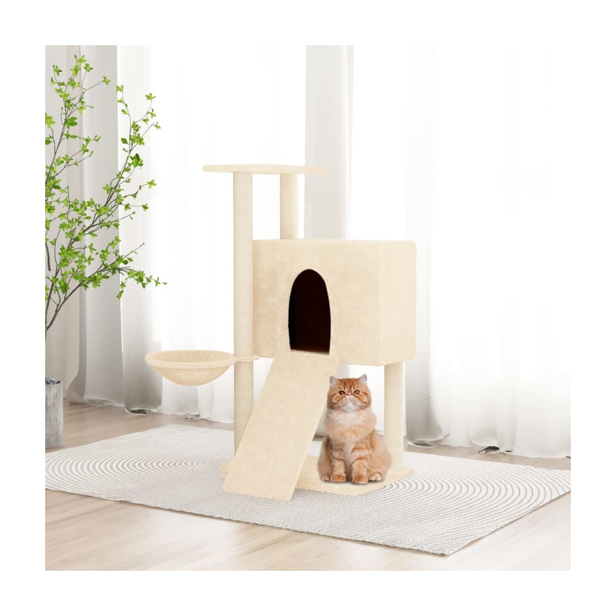 ¡Mantén entretenidos a tus adorables gatos sin parar con este rascador para gatos todo en uno! Torre para gatos todo en uno: El mueble para gatos con varios niveles está diseñado con 1 casa, 1 hamaca, 1 escalera y 1 plataforma, por lo que proporciona un lugar perfecto para que tus gatos trepen, se posen, arañen, se escondan y también se relajen.Material de felpa suave: La felpa extragruesa y suave está bien ventilada, es resistente a los arañazos, comodísima y acogedora.Postes de sisal natural: Los resilientes y fuertes postes de sisal natural del árbol rascador son perfectos para que tus amados gatos satisfagan su instinto de arañar y evitar así que arañen los muebles. Nota:Cada producto viene con un manual de montaje en la caja para facilitar el montaje.