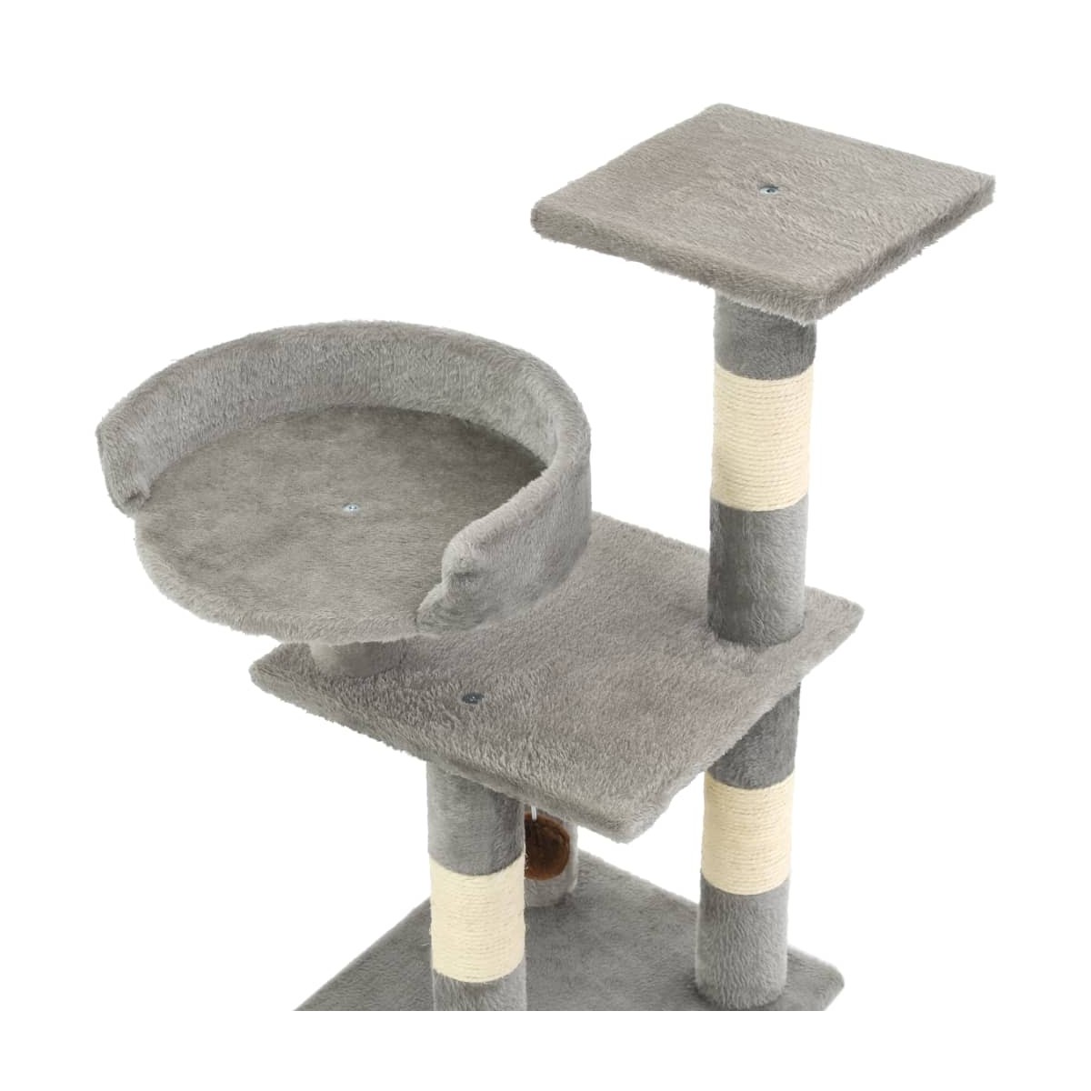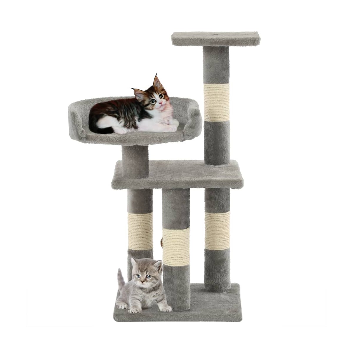 Con este poste/árbol de alta calidad, tus gatos pueden rascar, sentarse, esconderse, escalar y relajarse todo el tiempo que deseen. Se adaptará a cualquier decoración. Este rascador para gatos permitirá a los suyos estirarse y hacer ejercicio, especialmente en los fríos meses de invierno, cuando sus gatos estén encerrados en casa. La superficie afelpada y alfombrada es muy cómoda, y los postes rascadores envueltos en cuerda de sisal satisfarán el instinto de afilarse las uñas de sus gatos. Tiene una bola colgante, plataformas de observación y otras donde relajarse con que mantener entretenido a su amiguito. La base es robusta y estable. El rascador es apropiado para varios gatos y de fácil montaje.