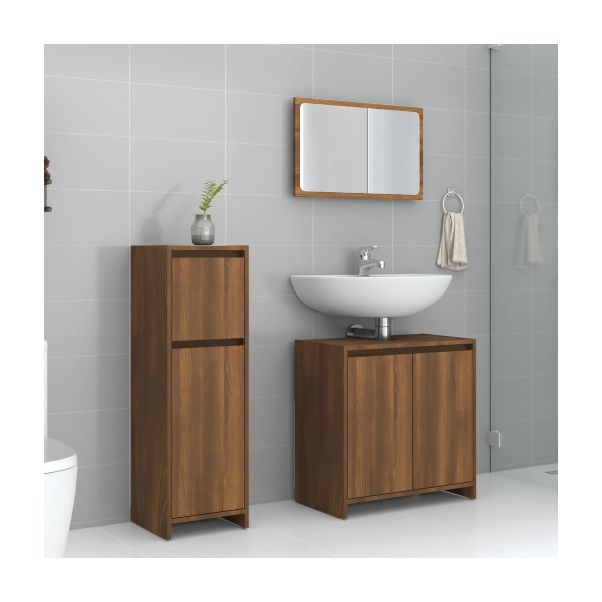 Este atractivo juego de armarios de baño, con amplio espacio de almacenaje, cuenta con un diseño elegante a la par que práctico. Material fácil de limpiar: La madera contrachapada es de una calidad excepcional con una superficie lisa y también se caracteriza por su fuerza, estabilidad y resistencia a la humedad.Amplio espacio de almacenaje: El espacio de almacenaje permite tener las cosas organizadas en estos muebles de baño.Diseño elegante: Las líneas limpias y el diseño elegante se integran perfectamente en el baño. Advertencia:Para evitar el vuelco, este producto debe usarse con el dispositivo provisto para fijarlo a la pared. Nota:Los tornillos y los tacos para el interior de la pared no están incluidos. Busca y utiliza tornillos y tacos adecuados para tus paredes. Si no lo tienes claro, busca asesoramiento profesional. Lee y sigue cada paso de las instrucciones cuidadosamente.Cada producto viene con un manual de montaje en la caja para facilitar el montaje.