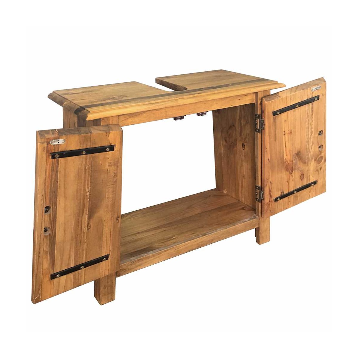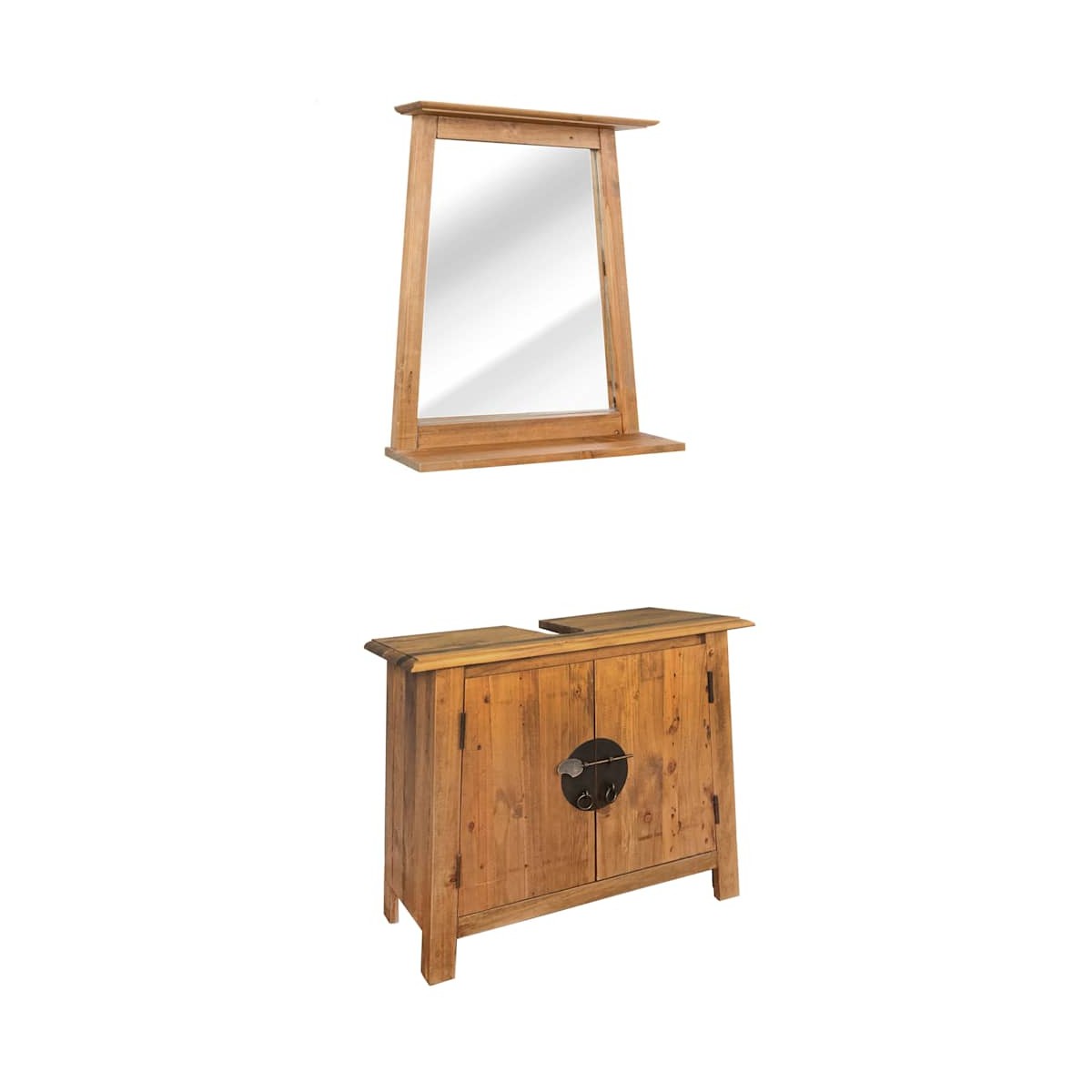 Este juego de baño de madera de estilo retro añadirá un toque de encanto rústico a tu baño. El robusto y duradero tocador y la estructura del espejo están hechos de madera maciza de pino. La artesanía contribuye a su estilo vintage. El montaje es fácil. La entrega incluye 1 mueble de tocador y 1 espejo. Nota importante: Los colores y las vetas varían de una pieza a otra, y los nudos de los armarios agregan carácter e individualidad, lo que le da a cada pieza una historia distinta y un atractivo estético único. La entrega es aleatoria, lo que garantiza la exclusividad e individualidad del producto.