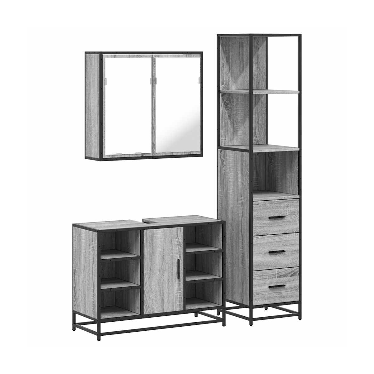 ¡Este elegante conjunto de muebles de baño es un excelente aporte para el baño y le da un aspecto ordenado y llamativo! Material estable y duradero: La madera de ingeniería es un material duradero y estable con una superficie lisa que es resistente a la humedad, la deformación y la rotura, lo que la convierte en una opción fiable para una variedad de proyectos.Estructura estable y duradera: La estructura metálica del armario realza tu hogar con un estilo industrial y proporciona una durabilidad, estabilidad y resistencia a la corrosión excepcionales.Amplio espacio de almacenamiento: Este mueble de baño ofrece un amplio espacio de almacenamiento para mantener tus elementos esenciales bien organizados y al alcance.Práctico mueble superior: La parte superior del mueble del fregadero tiene un agujero, por lo que es ideal para colocar el lavabo.Función de montaje en pared: El armario con espejo se cuelga en la pared, optimizando el espacio al no ocupar suelo, ideal para baños más pequeños. Advertencia:Para evitar que vuelque, este producto debe usarse con el dispositivo de fijación a la pared suministrado. Información útil:Los tornillos y los tacos para el interior de la pared no están incluidos. Recomendamos encontrar y utilizar tornillos y tacos adecuados específicamente para las paredes. Si no estás seguro, puedes consultar con un profesional. Lee y sigue cada paso de las instrucciones.