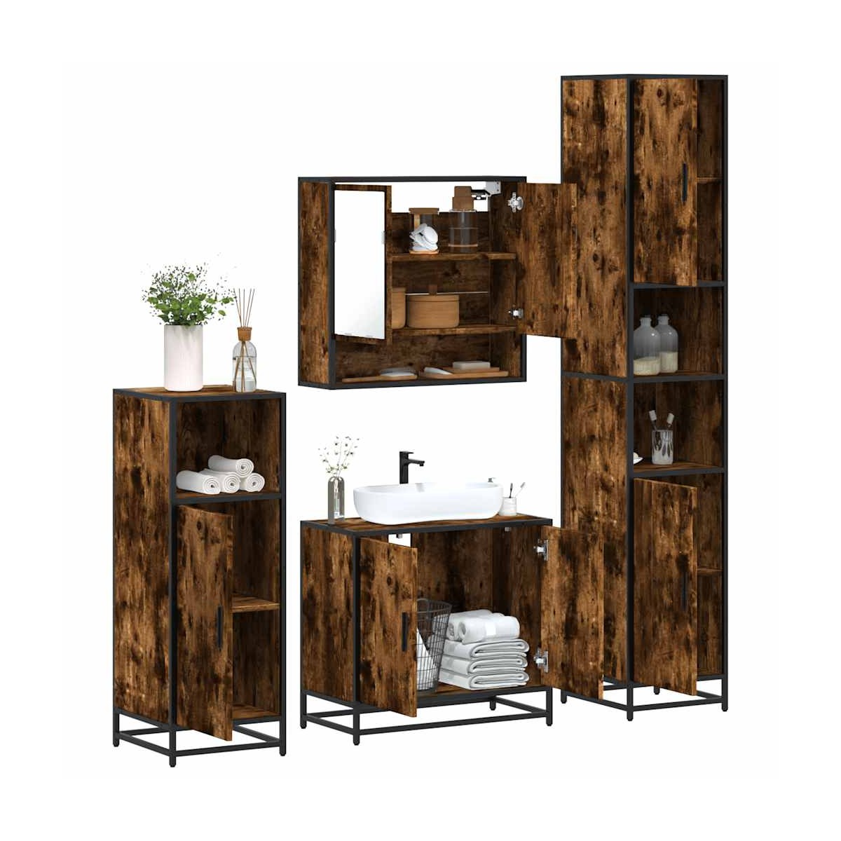 ¡Este elegante conjunto de muebles de baño es un excelente aporte para el baño y le da un aspecto ordenado y llamativo! Material estable y duradero: La madera de ingeniería es un material duradero y estable con una superficie lisa que es resistente a la humedad, la deformación y la rotura, lo que la convierte en una opción fiable para una variedad de proyectos.Estructura estable y duradera: La estructura metálica del armario realza tu hogar con un estilo industrial y proporciona una durabilidad, estabilidad y resistencia a la corrosión excepcionales.Amplio espacio de almacenamiento: Este mueble de baño ofrece un amplio espacio de almacenamiento para mantener tus elementos esenciales bien organizados y al alcance.Práctico mueble superior: La parte superior del mueble del fregadero tiene un agujero, por lo que es ideal para colocar el lavabo.Función de montaje en pared: El armario con espejo se cuelga en la pared, optimizando el espacio al no ocupar suelo, ideal para baños más pequeños. Advertencia:Para evitar que vuelque, este producto debe usarse con el dispositivo de fijación a la pared suministrado. Información útil:Los tornillos y los tacos para el interior de la pared no están incluidos. Recomendamos encontrar y utilizar tornillos y tacos adecuados específicamente para las paredes. Si no estás seguro, puedes consultar con un profesional. Lee y sigue cada paso de las instrucciones.