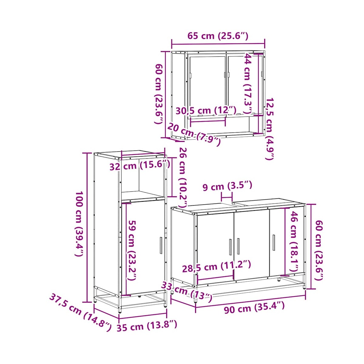 - Dimensiones del mueble de baño: 35 x 37,5 x 100 cm (ancho x profundo x alto)