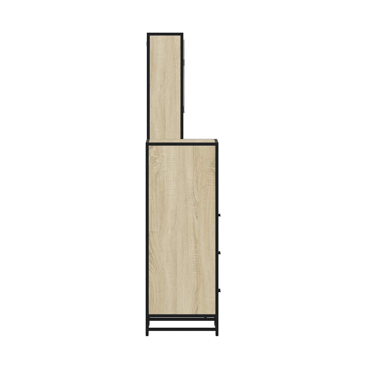 ¡Este elegante conjunto de muebles de baño es un excelente aporte para el baño y le da un aspecto ordenado y llamativo! Material estable y duradero: La madera de ingeniería es un material duradero y estable con una superficie lisa que es resistente a la humedad, la deformación y la rotura, lo que la convierte en una opción fiable para una variedad de proyectos.Marco estable y duradero: el marco de metal del mueble de baño realza su interior con un estilo industrial y proporciona una durabilidad, estabilidad y resistencia a la corrosión excepcionales.Amplio espacio de almacenamiento: El mueble de baño ofrece un amplio espacio para acomodar fácilmente tus artículos de tocador esenciales y artículos de baño, como jabones, champú, pasta de dientes, etc.Imagen nítida: La cara de cristal del espejo proporciona un reflejo fino y sin distorsiones, por lo que sirve para maquillarse, afeitarse o mirar si vas bien vestido antes de salir.Fácil de mantener: Gracias a su superficie lisa, el mueble de baño es fácil de limpiar con un paño húmedo y requiere menos mantenimiento. Información útil:Los tornillos y los tacos para el interior de la pared no están incluidos. Recomendamos encontrar y utilizar tornillos y tacos adecuados específicamente para las paredes. Si no estás seguro, puedes consultar con un profesional. Lee y sigue cada paso de las instrucciones. Advertencia:Para evitar que vuelque, este producto debe usarse con el dispositivo de fijación a la pared suministrado.