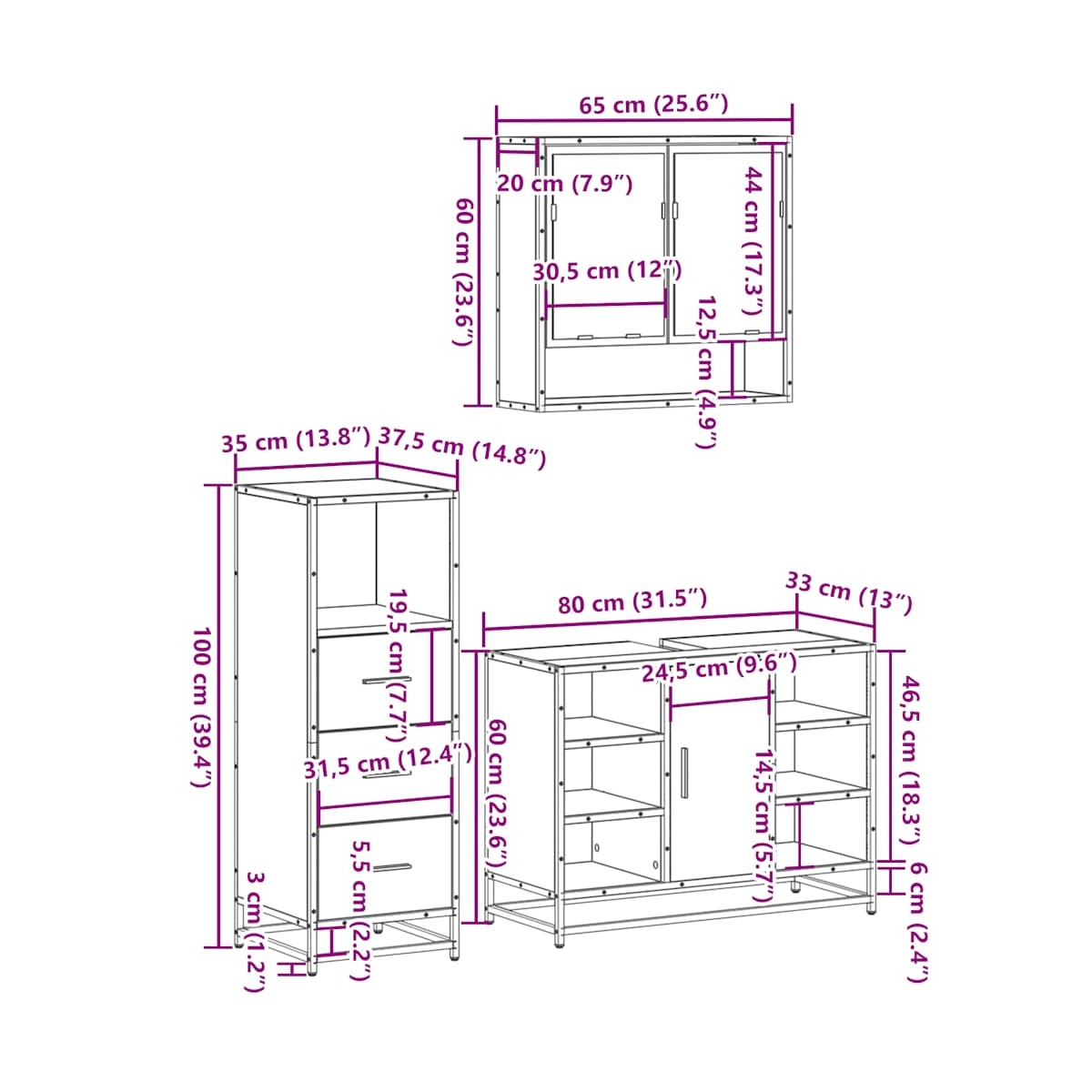 - Dimensiones del mueble de baño: 35 x 37,5 x 100 cm (ancho x profundo x alto)