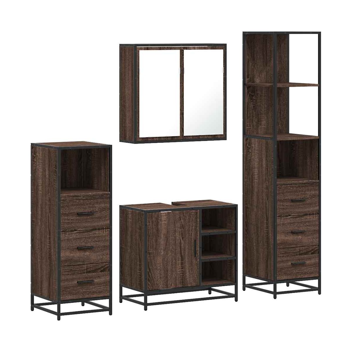 ¡Este elegante conjunto de muebles de baño es un excelente aporte para el baño y le da un aspecto ordenado y llamativo! Material estable y duradero: La madera de ingeniería es un material duradero y estable con una superficie lisa que es resistente a la humedad, la deformación y la rotura, lo que la convierte en una opción fiable para una variedad de proyectos.Estructura estable y duradera: La estructura metálica del armario realza tu hogar con un estilo industrial y proporciona una durabilidad, estabilidad y resistencia a la corrosión excepcionales.Amplio espacio de almacenamiento: Este mueble de baño ofrece un amplio espacio de almacenamiento para mantener tus elementos esenciales bien organizados y al alcance.Práctico mueble superior: La parte superior del mueble del fregadero tiene un agujero, por lo que es ideal para colocar el lavabo.Función de montaje en pared: El armario con espejo se cuelga en la pared, optimizando el espacio al no ocupar suelo, ideal para baños más pequeños. Advertencia:Para evitar que vuelque, este producto debe usarse con el dispositivo de fijación a la pared suministrado. Información útil:Los tornillos y los tacos para el interior de la pared no están incluidos. Recomendamos encontrar y utilizar tornillos y tacos adecuados específicamente para las paredes. Si no estás seguro, puedes consultar con un profesional. Lee y sigue cada paso de las instrucciones.