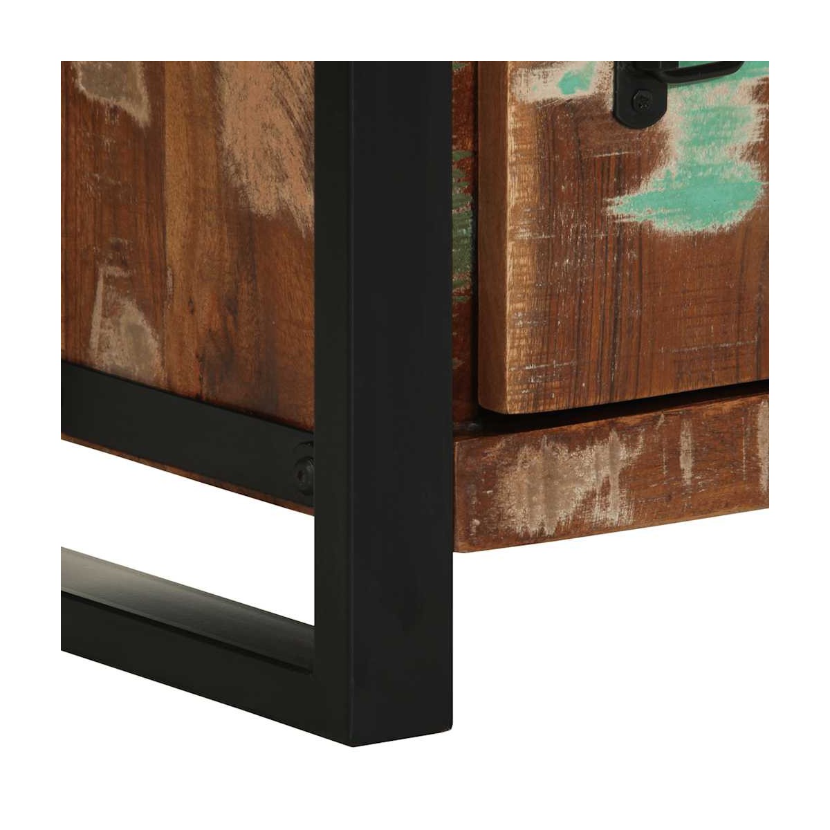 Este armario de baño es una elección genial para el baño, para que esté ordenado y organizado. Robusto y estable: La madera maciza reciclada consta de maderas reutilizadas como la teca, la madera de mango, la madera de pino y el haya. Dichos materiales proceden de antiguas construcciones como fábricas, cobertizos y barcos. Los signos de desgaste y la estructura visible de la veta dan a cada pieza su propia historia y un aspecto único.Marco estable y duradero: el marco de hierro del gabinete realza su interior con un estilo industrial y proporciona una durabilidad y estabilidad excepcionales.Práctica puerta: La puerta del armario proporciona un espacio de almacenamiento cerrado para mantener tus pertenencias organizadas, protegidas y fuera de la vista.Amplio espacio de almacenamiento: El armario para lavabo de baño ofrece un amplio espacio para acomodar fácilmente tus artículos de tocador esenciales y artículos de baño, como jabones, champú, pasta de dientes, etc.Fácil de mantener: Gracias a su superficie lisa, el mueble de baño es fácil de limpiar con un paño húmedo y requiere menos mantenimiento. Información útil:Cada artículo es único, con variaciones de color y veta. La entrega es aleatoria garantizando la exclusividad y la individualidad del producto.