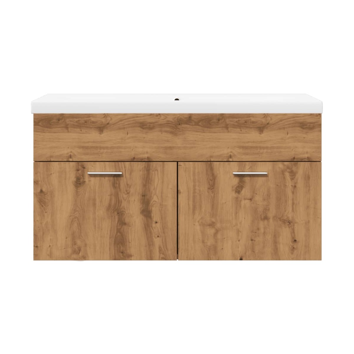Este elegante mueble de baño con lavabo integrado y amplio espacio de almacenaje es un aporte excelente para el cuarto de baño, ¡ya que le dará un aspecto ordenado y llamativo!Material duradero:La madera de ingeniería tiene una calidad excepcional, con una superficie lisa y también con fuerza, estabilidad y resistencia a la humedad.Amplio espacio de almacenamiento: El armario para lavabo de baño ofrece un amplio espacio para acomodar fácilmente tus artículos de tocador esenciales y artículos de baño, como jabones, champú, pasta de dientes, etc.Diseño que ahorra espacio: La parte superior del mueble de baño es ideal para colocar el lavabo y así aprovechar al máximo el espacio libre debajo del mismo.Función de montaje en la pared: El armario del baño puede montarse en la pared para añadir espacio de almacenamiento adicional. Así podrás aprovechar al máximo el espacio del suelo y mantener la zona limpia.Fácil de mantener: Gracias a su superficie lisa, el mueble de baño es fácil de limpiar con un paño húmedo y requiere menos mantenimiento.Información útil:Los tornillos y los tacos para el interior de la pared no están incluidos. Recomendamos encontrar y utilizar tornillos y tacos adecuados específicamente para las paredes. Si no estás seguro, puedes consultar con un profesional. Lee y sigue cada paso de las instrucciones.
