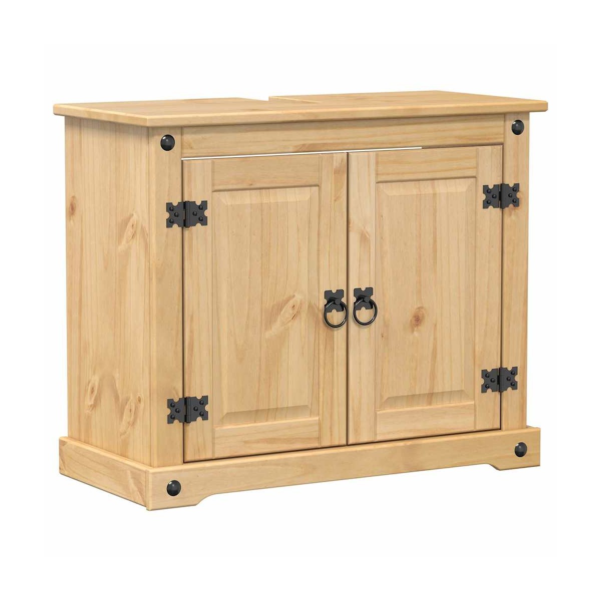Este conjunto de muebles de baño de madera es un excelente complemento para tu cuarto de baño, ya que le da un aspecto ordenado y llamativo. Material robusto y estable: La madera maciza de pino es conocida por su resistencia y durabilidad. Sus vetas rectas y sus característicos nudos contribuyen a su encanto rústico.Amplio espacio de almacenamiento: Este mueble de baño ofrece un amplio espacio de almacenamiento para acomodar fácilmente tus artículos de tocador y baño esenciales, como jabones, champú, pasta de dientes, etc.Manijas prácticas: El gabinete viene con manijas que brindan un agarre cómodo, ayudándolo a abrir y cerrar el gabinete fácilmente y al mismo tiempo agregando belleza adicional.Puerta práctica: Mantén ordenado el espacio al esconder los pequeños objetos esenciales detrás de la puerta de este mueble de baño.Fácil mantenimiento: Gracias a su superficie lisa, el armario del baño es fácil de limpiar con un paño húmedo y requiere menos mantenimiento. Advertencia:Para evitar que vuelque, este producto debe usarse con el dispositivo de fijación a la pared suministrado.