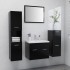 Con este elegante set de muebles de baño, podrás crear espacio de almacenamiento extra para tu baño con un look llamativo y ordenado. Diseño elegante: Las líneas limpias y el diseño elegante se integran perfectamente en el baño. El conjunto de muebles consta de un armario de lavabo, un armario bajo, un armario alto y un espejo. El elegante armario de lavabo tiene 1 compartimento, y la parte superior es ideal para colocar el fregadero. El armario alto cuenta con un total de 5 compartimentos y 2 puertas, mientras que el armario bajo tiene 2 compartimentos. Estos 2 armarios ofrecen varias opciones de almacenamiento y espacio adicional para guardar artículos en tu baño. El espejo también agrega un look excelente a la decoración de tu hogar. Además, este juego de baño es fácil de limpiar con un paño húmedo. Nota: El fregadero, grifo y desagüe no están incluidos en la entrega.