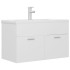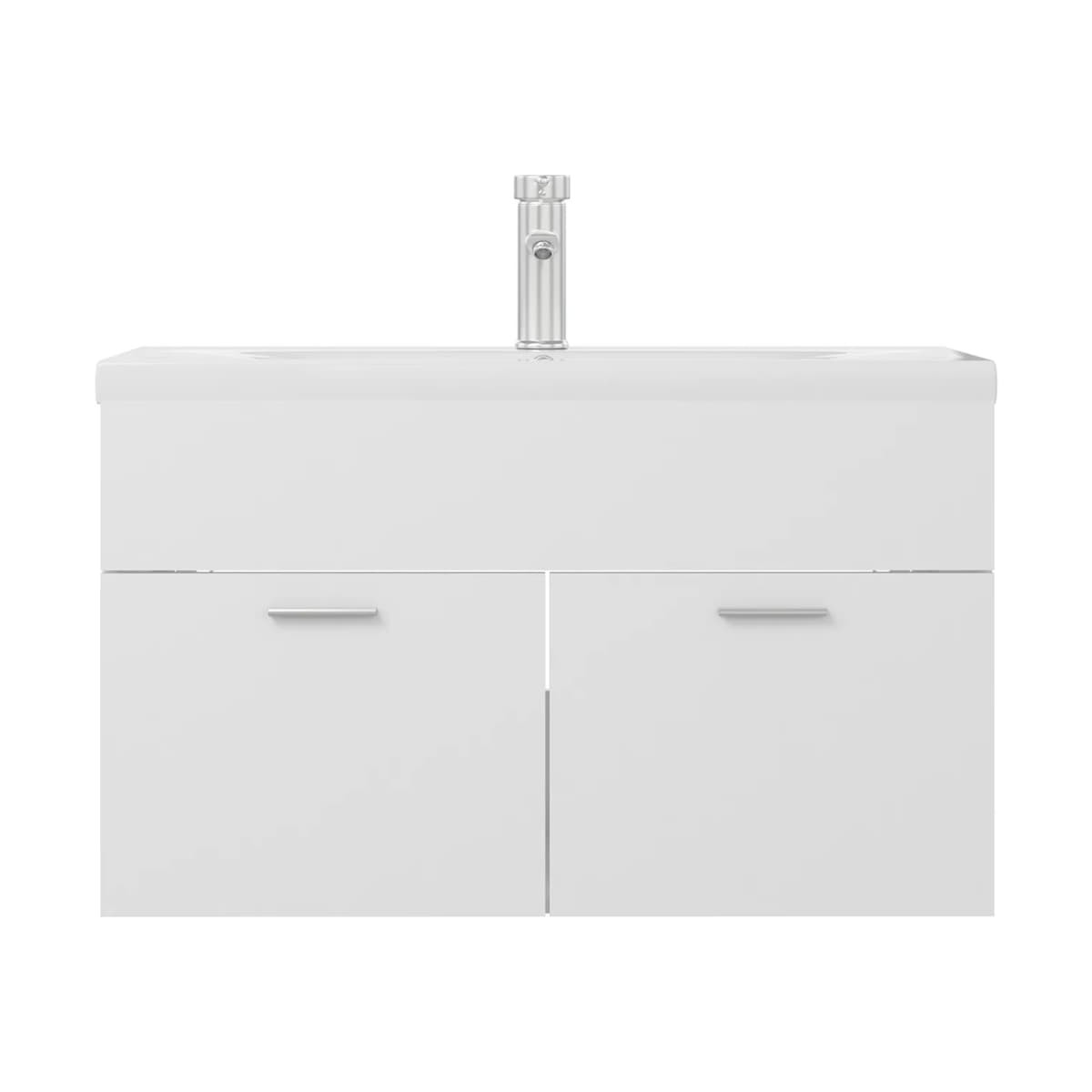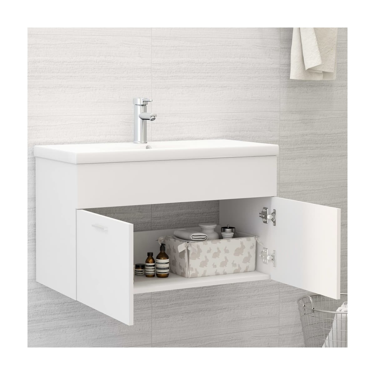 Este armario fregadero con lavabo incorporado es una combinación perfecta para tu baño o aseo con un aspecto llamativo y ordenado. El armario es de madera contrachapada, lo que lo hace robusto y estable. El armario de almacenamiento tiene 1 compartimento y 2 puertas, ofreciendo un amplio espacio para almacenar artículos. Cabe perfectamente debajo del lavabo y hace que el almacenamiento en el baño sea bastante práctico. Hecho de cerámica, el lavabo no solo puede servir como recipiente para el uso diario, sino también como adorno en tu casa. Gracias a su diseño vanguardista y moderno, este lavabo definitivamente se adaptará a cualquier decoración. Un rebosadero también está equipado para hacer salir el agua cuando se llena demasiado. Su superficie acristalada aporta un diseño moderno pero elegante. Además, el armario y el lavabo son fáciles de limpiar con un paño húmedo. Ten en cuenta que el grifo y el escurridor de empuje con función de desbordamiento están incluidos en la entrega.