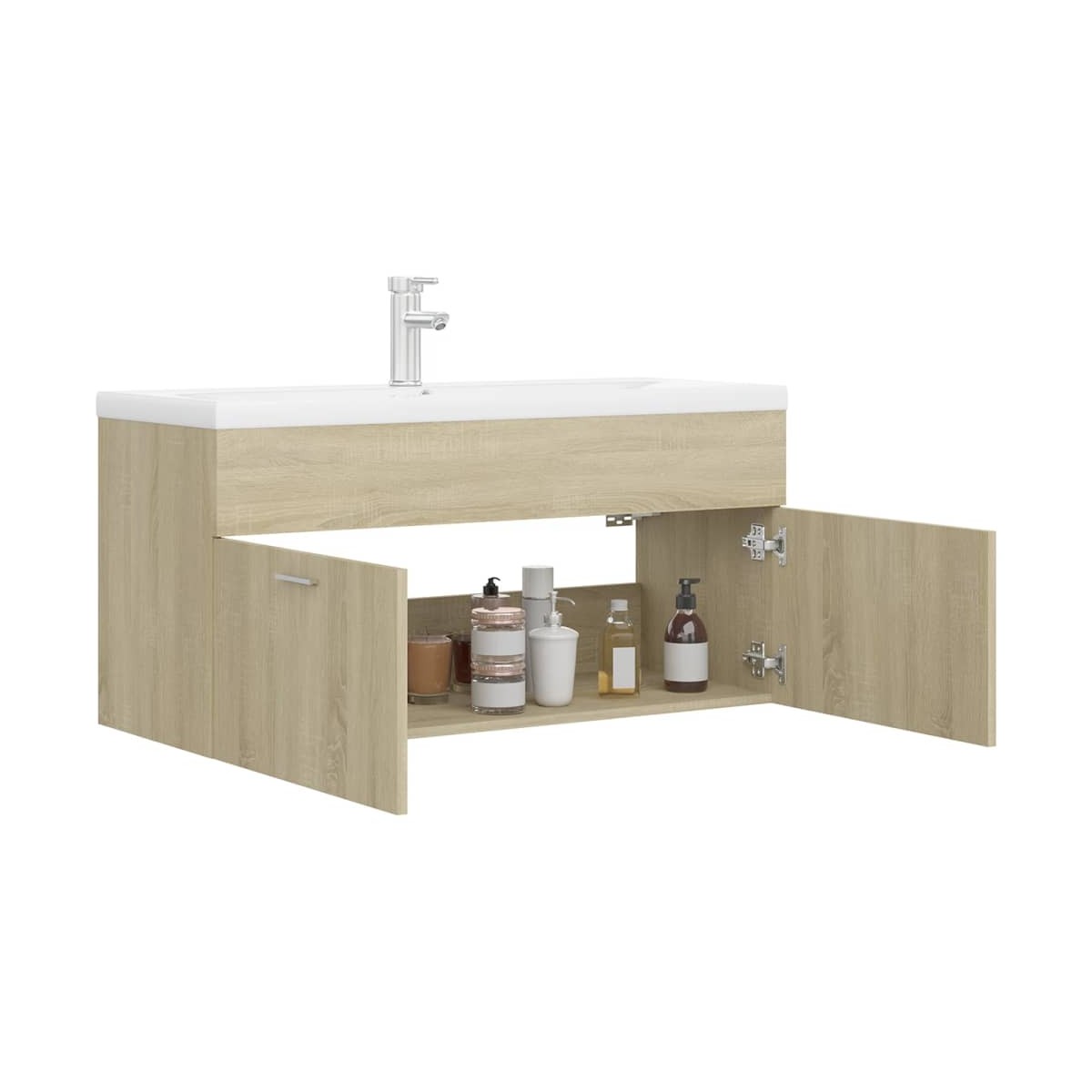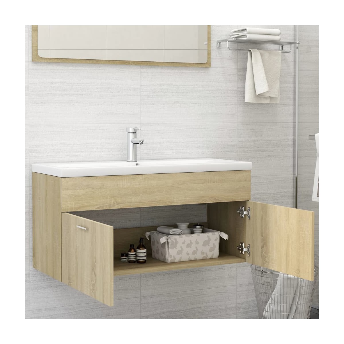 Este armario fregadero con lavabo incorporado es una combinación perfecta para tu baño o aseo con un aspecto llamativo y ordenado. El armario es de madera de ingeniería, lo que lo hace robusto y estable. El armario de almacenamiento tiene 1 compartimento y 2 puertas, ofreciendo un amplio espacio para almacenar artículos. Cabe perfectamente debajo del lavabo y hace que el almacenamiento en el baño sea bastante práctico. Hecho de cerámica, el lavabo no solo puede servir como recipiente para el uso diario, sino también como adorno en tu casa. Gracias a su diseño vanguardista y moderno, este lavabo definitivamente se adaptará a cualquier decoración. Un rebosadero también está equipado para hacer salir el agua cuando se llena demasiado. Su superficie acristalada aporta un diseño moderno pero elegante. Además, el armario y el lavabo son fáciles de limpiar con un paño húmedo. Ten en cuenta que el grifo y el escurridor de empuje con función de desbordamiento están incluidos en la entrega.