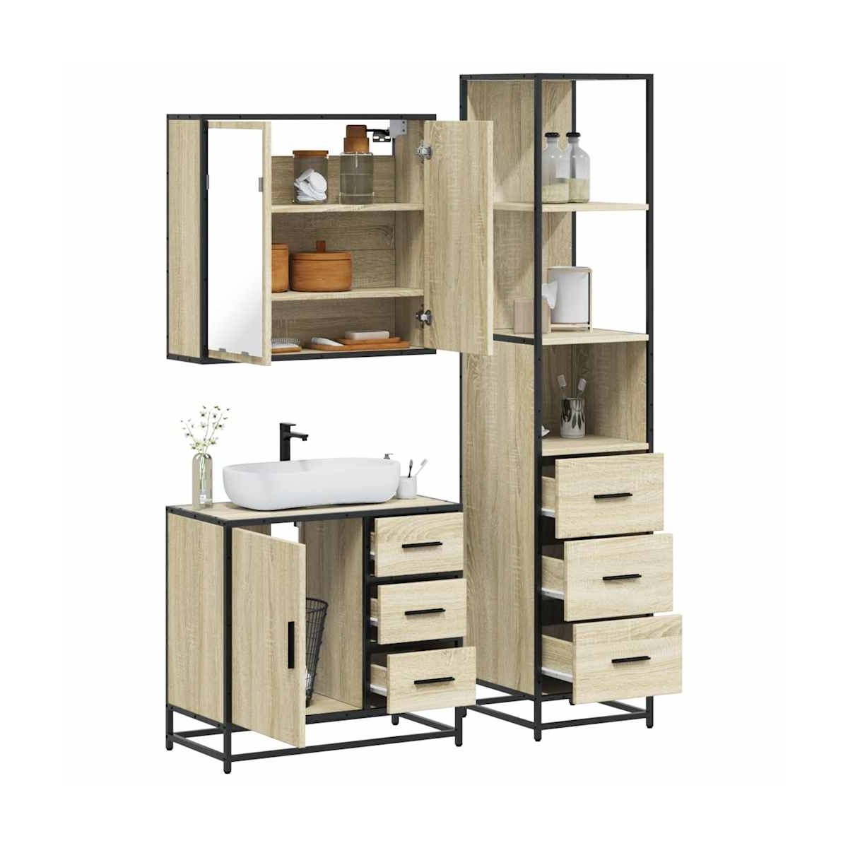 ¡Este elegante conjunto de muebles de baño es un excelente aporte para el baño y le da un aspecto ordenado y llamativo! Material estable y duradero: La madera de ingeniería es un material duradero y estable con una superficie lisa que es resistente a la humedad, la deformación y la rotura, lo que la convierte en una opción fiable para una variedad de proyectos.Estructura estable y duradera: La estructura metálica del armario realza tu hogar con un estilo industrial y proporciona una durabilidad, estabilidad y resistencia a la corrosión excepcionales.Amplio espacio de almacenamiento: Este mueble de baño ofrece un amplio espacio de almacenamiento para mantener tus elementos esenciales bien organizados y al alcance.Práctico mueble superior: La parte superior del mueble del fregadero tiene un agujero, por lo que es ideal para colocar el lavabo.Función de montaje en pared: El armario con espejo se cuelga en la pared, optimizando el espacio al no ocupar suelo, ideal para baños más pequeños. Advertencia:Para evitar que vuelque, este producto debe usarse con el dispositivo de fijación a la pared suministrado. Información útil:Los tornillos y los tacos para el interior de la pared no están incluidos. Recomendamos encontrar y utilizar tornillos y tacos adecuados específicamente para las paredes. Si no estás seguro, puedes consultar con un profesional. Lee y sigue cada paso de las instrucciones.