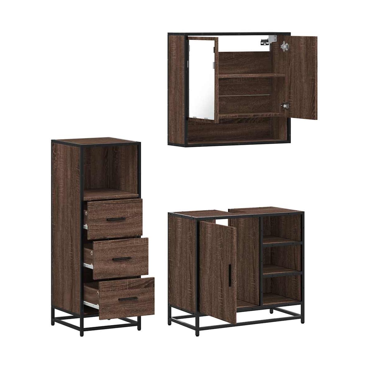 ¡Este elegante conjunto de muebles de baño es un excelente aporte para el baño y le da un aspecto ordenado y llamativo! Material estable y duradero: La madera de ingeniería es un material duradero y estable con una superficie lisa que es resistente a la humedad, la deformación y la rotura, lo que la convierte en una opción fiable para una variedad de proyectos.Marco estable y duradero: el marco de metal del mueble de baño realza su interior con un estilo industrial y proporciona una durabilidad, estabilidad y resistencia a la corrosión excepcionales.Amplio espacio de almacenamiento: El mueble de baño ofrece un amplio espacio para acomodar fácilmente tus artículos de tocador esenciales y artículos de baño, como jabones, champú, pasta de dientes, etc.Imagen nítida: La cara de cristal del espejo proporciona un reflejo fino y sin distorsiones, por lo que sirve para maquillarse, afeitarse o mirar si vas bien vestido antes de salir.Fácil de mantener: Gracias a su superficie lisa, el mueble de baño es fácil de limpiar con un paño húmedo y requiere menos mantenimiento. Información útil:Los tornillos y los tacos para el interior de la pared no están incluidos. Recomendamos encontrar y utilizar tornillos y tacos adecuados específicamente para las paredes. Si no estás seguro, puedes consultar con un profesional. Lee y sigue cada paso de las instrucciones. Advertencia:Para evitar que vuelque, este producto debe usarse con el dispositivo de fijación a la pared suministrado.