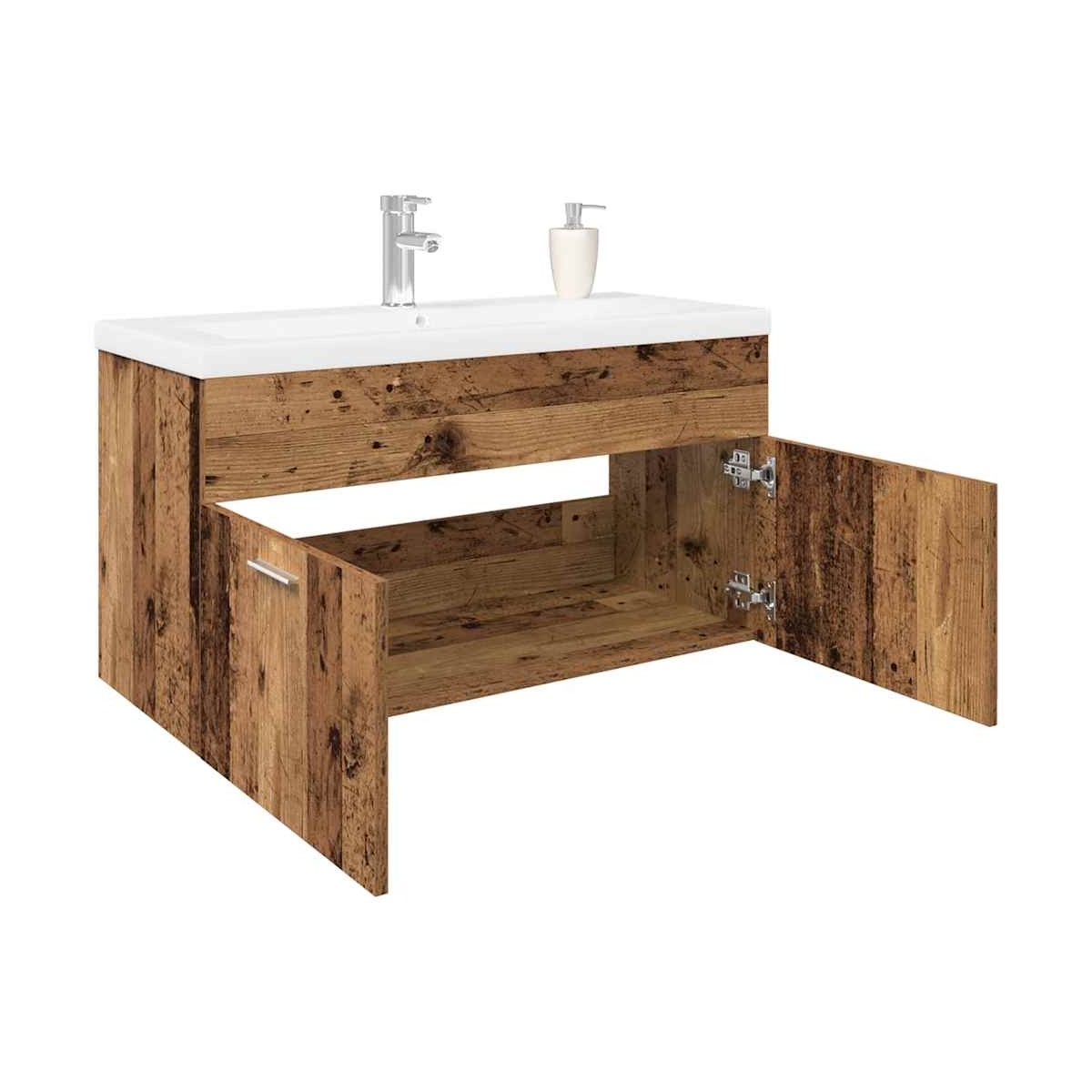 Este elegante mueble de baño con lavabo integrado y amplio espacio de almacenaje es un aporte excelente para el cuarto de baño, ¡ya que le dará un aspecto ordenado y llamativo! Material robusto: El armario para lavabo está hecho de madera contrachapada, que tiene una calidad excepcional, con una superficie lisa y también cuenta con fuerza, estabilidad y resistencia a la humedad.Amplio almacenaje: El armario de baño posee un cajón, que ofrece un amplio espacio de almacenamiento para guardar artículos en el baño.Diseño práctico: La parte superior de este armario de baño es ideal para colocar el lavamanos.Función de montaje en la pared: El armario del baño puede montarse en la pared para añadir espacio de almacenamiento adicional. Así podrás aprovechar al máximo el espacio del suelo y mantener la zona limpia.Rebosadero: También está equipado con un agujero de desagüe para que fluya el agua cuando se llena demasiado. Información útil:Los tornillos y los tacos para el interior de la pared no están incluidos. Busca y utiliza tornillos y tacos adecuados para tus paredes. Si no lo tienes claro, busca asesoramiento profesional. Lee y sigue cada paso de las instrucciones cuidadosamente.El grifo y el escurridor de empuje con función de rebosadero están incluidos.El grifo es de agua fría y caliente, y si necesitas agua caliente, hay que conectar un calentador de agua.
