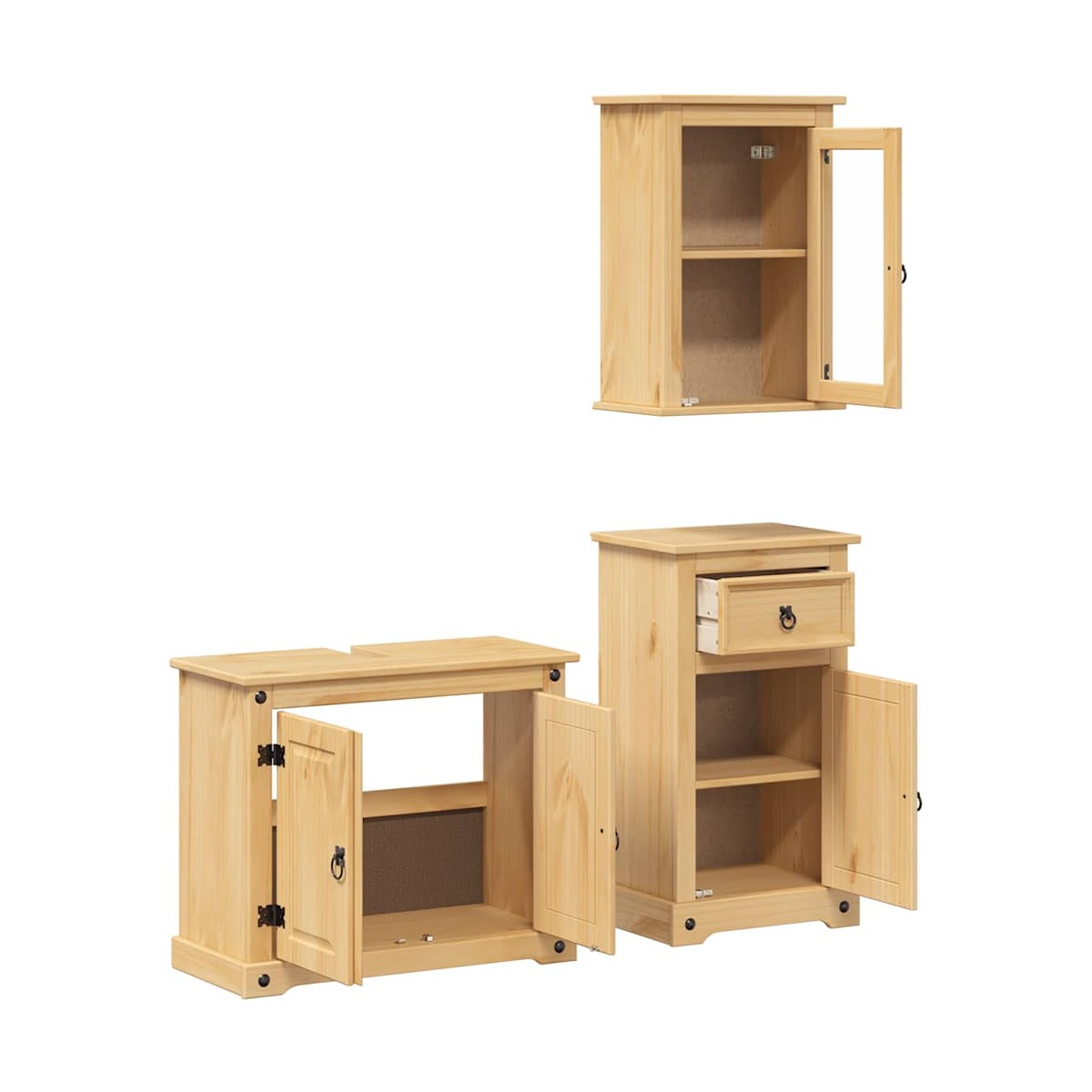 Este conjunto de muebles de baño de madera es un excelente complemento para tu cuarto de baño, ya que le da un aspecto ordenado y llamativo. Material robusto y estable: La madera maciza de pino es conocida por su resistencia y durabilidad. Sus vetas rectas y sus característicos nudos contribuyen a su encanto rústico.Amplio espacio de almacenamiento: Este mueble de baño ofrece un amplio espacio de almacenamiento para acomodar fácilmente tus artículos de tocador y baño esenciales, como jabones, champú, pasta de dientes, etc.Manijas prácticas: El gabinete viene con manijas que brindan un agarre cómodo, ayudándolo a abrir y cerrar el gabinete fácilmente y al mismo tiempo agregando belleza adicional.Puerta práctica: Mantén ordenado el espacio al esconder los pequeños objetos esenciales detrás de la puerta de este mueble de baño.Fácil mantenimiento: Gracias a su superficie lisa, el armario del baño es fácil de limpiar con un paño húmedo y requiere menos mantenimiento. Información útil:Los tornillos y los tacos para el interior de la pared no están incluidos. Te recomendamos buscar y utilizar tornillos y tacos adecuados específicamente para tus paredes. Si no estás seguro, puedes consultar con un profesional. Lee y sigue cada paso de las instrucciones. Advertencia:Para evitar que vuelque, este producto debe usarse con el dispositivo de fijación a la pared suministrado.