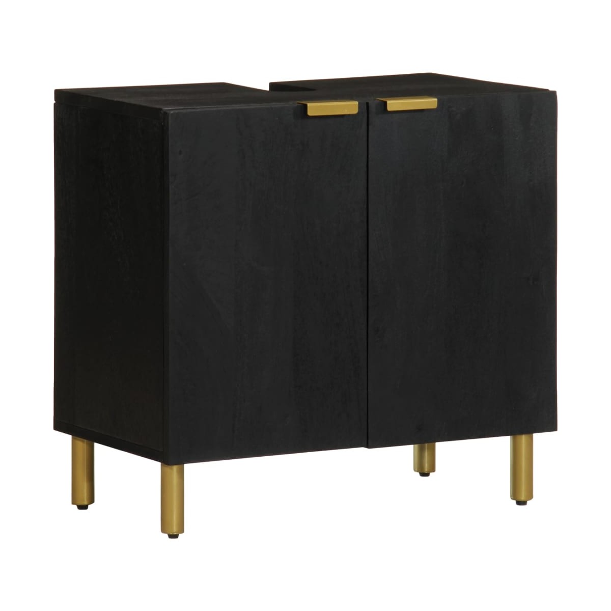 Este armario para lavabo de baño es un aporte excelente para el cuarto de baño, ¡ya que le dará un aspecto ordenado y llamativo! Material duradero:La madera de ingeniería tiene una calidad excepcional, con una superficie lisa y también con fuerza, estabilidad y resistencia a la humedad.Amplio espacio de almacenamiento: El armario para lavabo de baño ofrece un amplio espacio para acomodar fácilmente tus artículos de tocador esenciales y artículos de baño, como jabones, champú, pasta de dientes, etc.Diseño que ahorra espacio: La parte superior del mueble de baño es ideal para colocar el lavabo y así aprovechar al máximo el espacio libre debajo del mismo.Patas de hierro: Las patas de hierro agregan un estilo industrial a tu decoración y garantizan la estabilidad del tocador del baño. Advertencia:Para evitar que vuelque, este producto debe usarse con el dispositivo de fijación a la pared suministrado.
