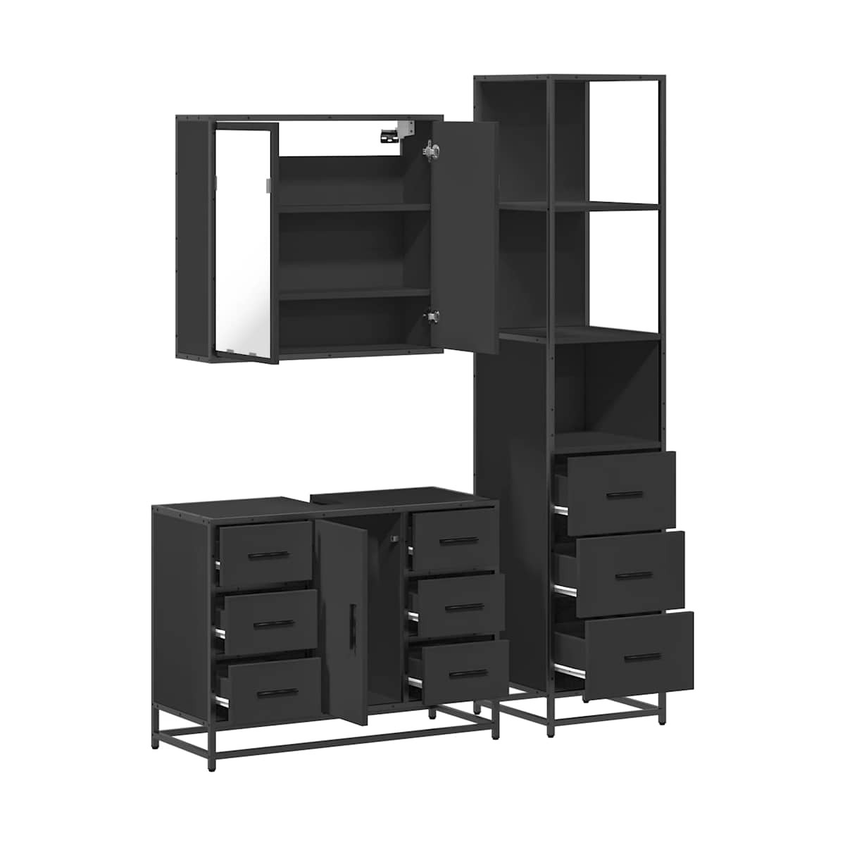 ¡Este elegante conjunto de muebles de baño es un excelente aporte para el baño y le da un aspecto ordenado y llamativo! Material estable y duradero: La madera de ingeniería es un material duradero y estable con una superficie lisa que es resistente a la humedad, la deformación y la rotura, lo que la convierte en una opción fiable para una variedad de proyectos.Estructura estable y duradera: La estructura metálica del armario realza tu hogar con un estilo industrial y proporciona una durabilidad, estabilidad y resistencia a la corrosión excepcionales.Amplio espacio de almacenamiento: Este mueble de baño ofrece un amplio espacio de almacenamiento para mantener tus elementos esenciales bien organizados y al alcance.Práctico mueble superior: La parte superior del mueble del fregadero tiene un agujero, por lo que es ideal para colocar el lavabo.Función de montaje en pared: El armario con espejo se cuelga en la pared, optimizando el espacio al no ocupar suelo, ideal para baños más pequeños. Advertencia:Para evitar que vuelque, este producto debe usarse con el dispositivo de fijación a la pared suministrado. Información útil:Los tornillos y los tacos para el interior de la pared no están incluidos. Recomendamos encontrar y utilizar tornillos y tacos adecuados específicamente para las paredes. Si no estás seguro, puedes consultar con un profesional. Lee y sigue cada paso de las instrucciones.