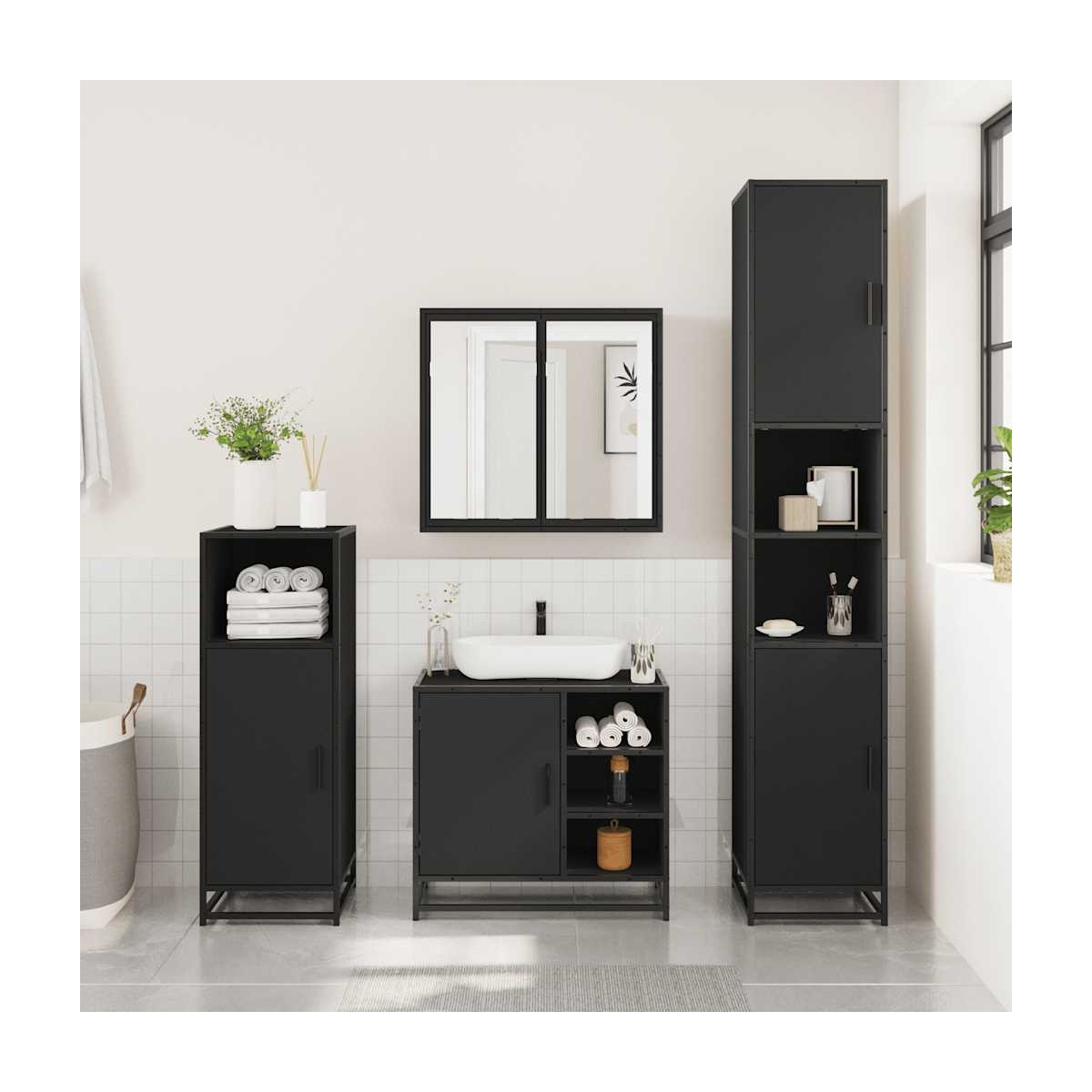 ¡Este elegante conjunto de muebles de baño es un excelente aporte para el baño y le da un aspecto ordenado y llamativo! Material estable y duradero: La madera de ingeniería es un material duradero y estable con una superficie lisa que es resistente a la humedad, la deformación y la rotura, lo que la convierte en una opción fiable para una variedad de proyectos.Marco estable y duradero: el marco de metal del mueble de baño realza su interior con un estilo industrial y proporciona una durabilidad, estabilidad y resistencia a la corrosión excepcionales.Amplio espacio de almacenamiento: El mueble de baño ofrece un amplio espacio para acomodar fácilmente tus artículos de tocador esenciales y artículos de baño, como jabones, champú, pasta de dientes, etc.Imagen nítida: La cara de cristal del espejo proporciona un reflejo fino y sin distorsiones, por lo que sirve para maquillarse, afeitarse o mirar si vas bien vestido antes de salir.Fácil de mantener: Gracias a su superficie lisa, el mueble de baño es fácil de limpiar con un paño húmedo y requiere menos mantenimiento. Información útil:Los tornillos y los tacos para el interior de la pared no están incluidos. Recomendamos encontrar y utilizar tornillos y tacos adecuados específicamente para las paredes. Si no estás seguro, puedes consultar con un profesional. Lee y sigue cada paso de las instrucciones. Advertencia:Para evitar que vuelque, este producto debe usarse con el dispositivo de fijación a la pared suministrado.