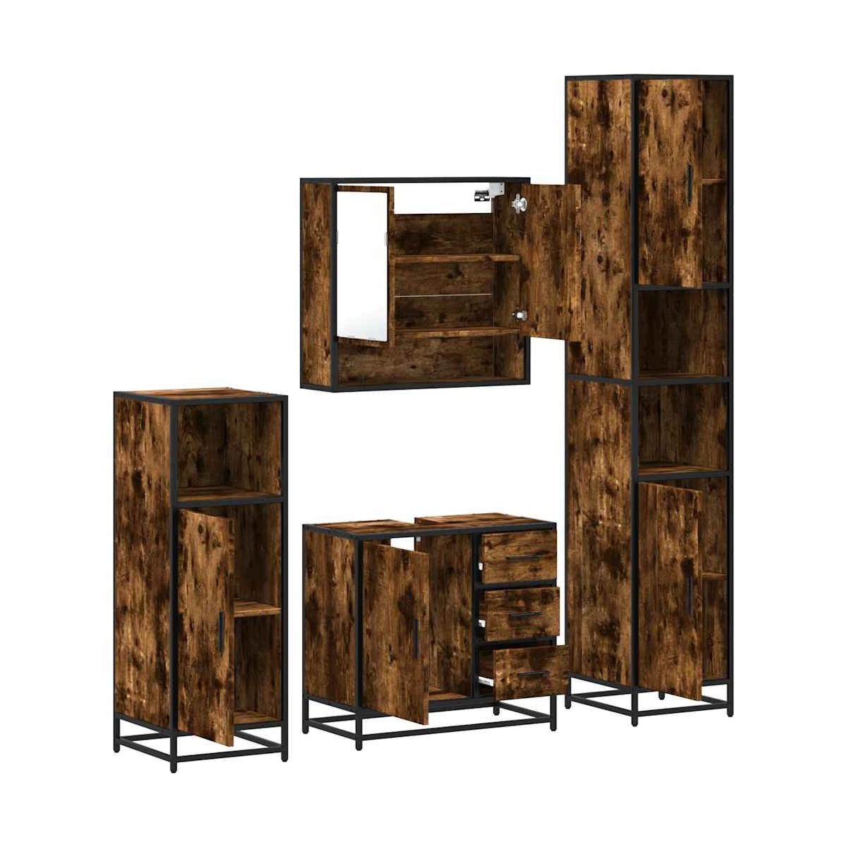 ¡Este elegante conjunto de muebles de baño es un excelente aporte para el baño y le da un aspecto ordenado y llamativo! Material estable y duradero: La madera de ingeniería es un material duradero y estable con una superficie lisa que es resistente a la humedad, la deformación y la rotura, lo que la convierte en una opción fiable para una variedad de proyectos.Estructura estable y duradera: La estructura metálica del armario realza tu hogar con un estilo industrial y proporciona una durabilidad, estabilidad y resistencia a la corrosión excepcionales.Amplio espacio de almacenamiento: Este mueble de baño ofrece un amplio espacio de almacenamiento para mantener tus elementos esenciales bien organizados y al alcance.Práctico mueble superior: La parte superior del mueble del fregadero tiene un agujero, por lo que es ideal para colocar el lavabo.Función de montaje en pared: El armario con espejo se cuelga en la pared, optimizando el espacio al no ocupar suelo, ideal para baños más pequeños. Advertencia:Para evitar que vuelque, este producto debe usarse con el dispositivo de fijación a la pared suministrado. Información útil:Los tornillos y los tacos para el interior de la pared no están incluidos. Recomendamos encontrar y utilizar tornillos y tacos adecuados específicamente para las paredes. Si no estás seguro, puedes consultar con un profesional. Lee y sigue cada paso de las instrucciones.