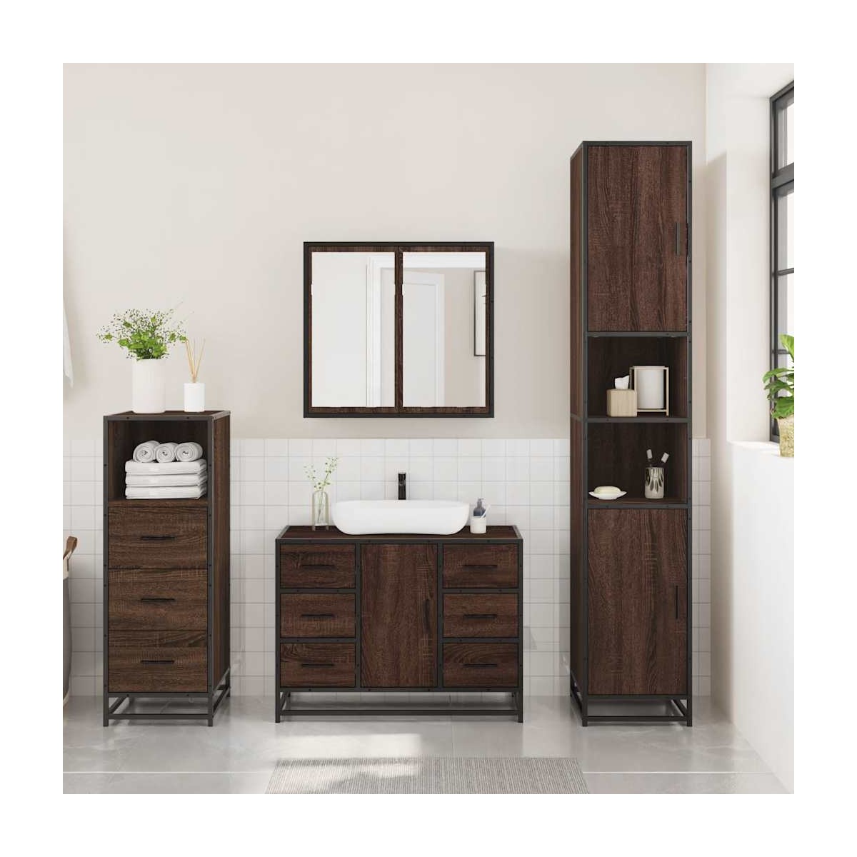 ¡Este elegante conjunto de muebles de baño es un excelente aporte para el baño y le da un aspecto ordenado y llamativo! Material estable y duradero: La madera de ingeniería es un material duradero y estable con una superficie lisa que es resistente a la humedad, la deformación y la rotura, lo que la convierte en una opción fiable para una variedad de proyectos.Marco estable y duradero: el marco de metal del mueble de baño realza su interior con un estilo industrial y proporciona una durabilidad, estabilidad y resistencia a la corrosión excepcionales.Amplio espacio de almacenamiento: El mueble de baño ofrece un amplio espacio para acomodar fácilmente tus artículos de tocador esenciales y artículos de baño, como jabones, champú, pasta de dientes, etc.Imagen nítida: La cara de cristal del espejo proporciona un reflejo fino y sin distorsiones, por lo que sirve para maquillarse, afeitarse o mirar si vas bien vestido antes de salir.Fácil de mantener: Gracias a su superficie lisa, el mueble de baño es fácil de limpiar con un paño húmedo y requiere menos mantenimiento. Información útil:Los tornillos y los tacos para el interior de la pared no están incluidos. Recomendamos encontrar y utilizar tornillos y tacos adecuados específicamente para las paredes. Si no estás seguro, puedes consultar con un profesional. Lee y sigue cada paso de las instrucciones. Advertencia:Para evitar que vuelque, este producto debe usarse con el dispositivo de fijación a la pared suministrado.