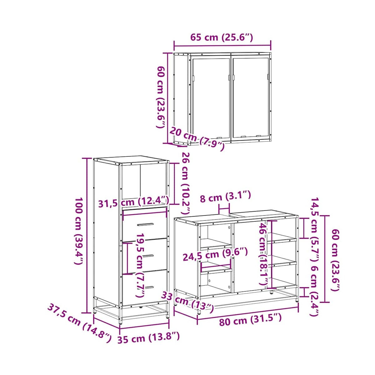 - Dimensiones del mueble de baño: 35 x 37,5 x 100 cm (ancho x profundo x alto)