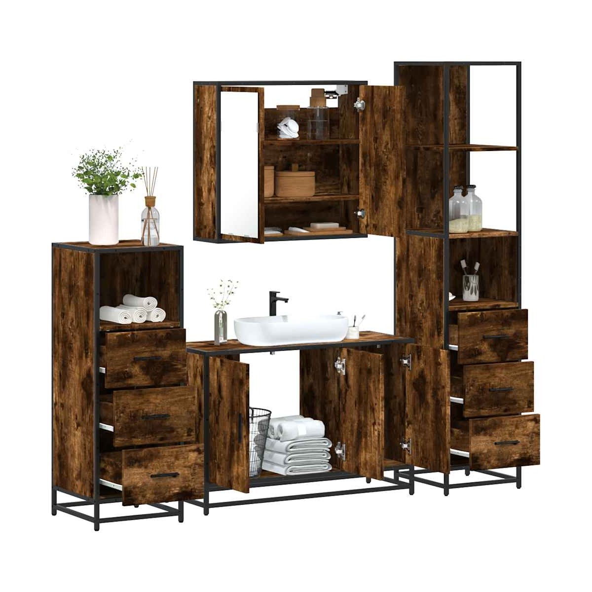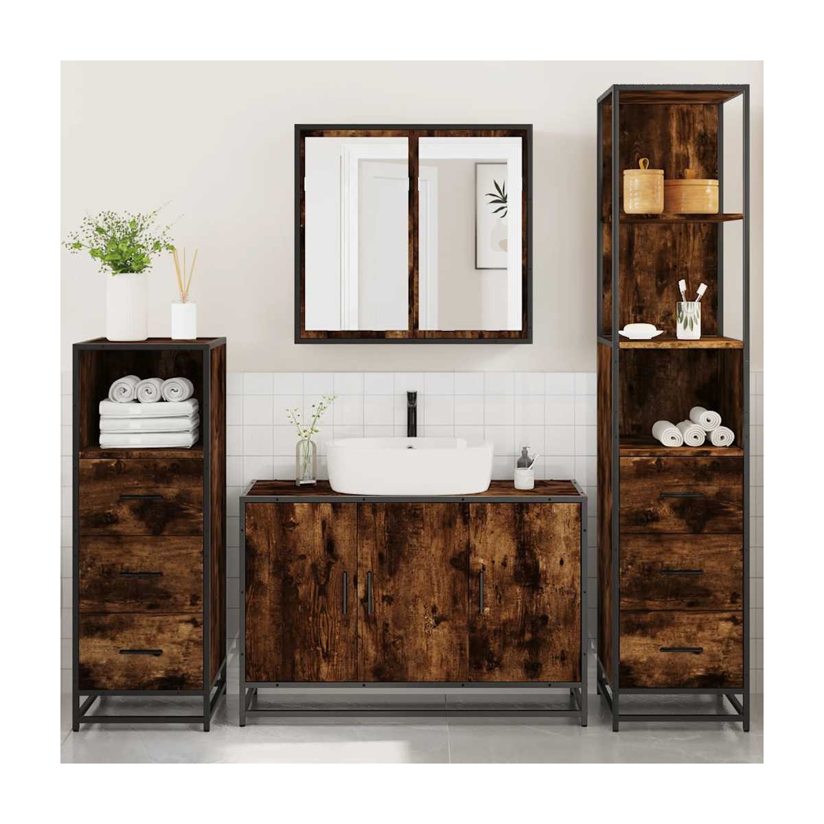 ¡Este elegante conjunto de muebles de baño es un excelente aporte para el baño y le da un aspecto ordenado y llamativo! Material estable y duradero: La madera de ingeniería es un material duradero y estable con una superficie lisa que es resistente a la humedad, la deformación y la rotura, lo que la convierte en una opción fiable para una variedad de proyectos.Estructura estable y duradera: La estructura metálica del armario realza tu hogar con un estilo industrial y proporciona una durabilidad, estabilidad y resistencia a la corrosión excepcionales.Amplio espacio de almacenamiento: Este mueble de baño ofrece un amplio espacio de almacenamiento para mantener tus elementos esenciales bien organizados y al alcance.Práctico mueble superior: La parte superior del mueble del fregadero tiene un agujero, por lo que es ideal para colocar el lavabo.Función de montaje en pared: El armario con espejo se cuelga en la pared, optimizando el espacio al no ocupar suelo, ideal para baños más pequeños. Advertencia:Para evitar que vuelque, este producto debe usarse con el dispositivo de fijación a la pared suministrado. Información útil:Los tornillos y los tacos para el interior de la pared no están incluidos. Recomendamos encontrar y utilizar tornillos y tacos adecuados específicamente para las paredes. Si no estás seguro, puedes consultar con un profesional. Lee y sigue cada paso de las instrucciones.