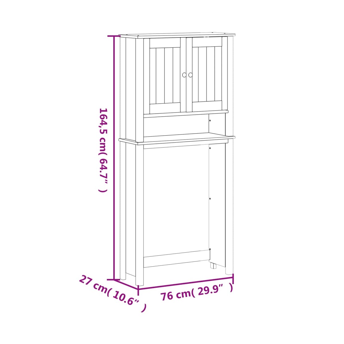 Maximiza el espacio del cuarto de baño y haz que esté limpio y ordenado con este mueble para lavadora de madera. Madera de pino maciza: La madera de pino maciza es un bonito material natural. La madera de pino tiene vetas rectas, y los nudos dan al material su distintivo aspecto rústico.Amplio espacio de almacenaje: El armario para lavadora cuenta con 2 puertas y 3 estantes, que ofrecen un amplio espacio para guardar fácilmente artículos de limpieza como jabón, detergente, suavizante, etc.Diseño que ahorra espacio: El armario para lavadora, diseñado para colocarse encima de la lavadora, encaja bien en espacios reducidos, por lo que es ideal para baños y cuartos de la lavadora pequeños.Fácil de limpiar: El diseño con pintura UV aporta una superficie lisa y facilita la limpieza. El mueble de baño es resistente al agua y, por lo tanto, muy duradero. Advertencia:Para evitar que se vuelque, este producto debe usarse con un dispositivo de fijación a la pared (no incluido).