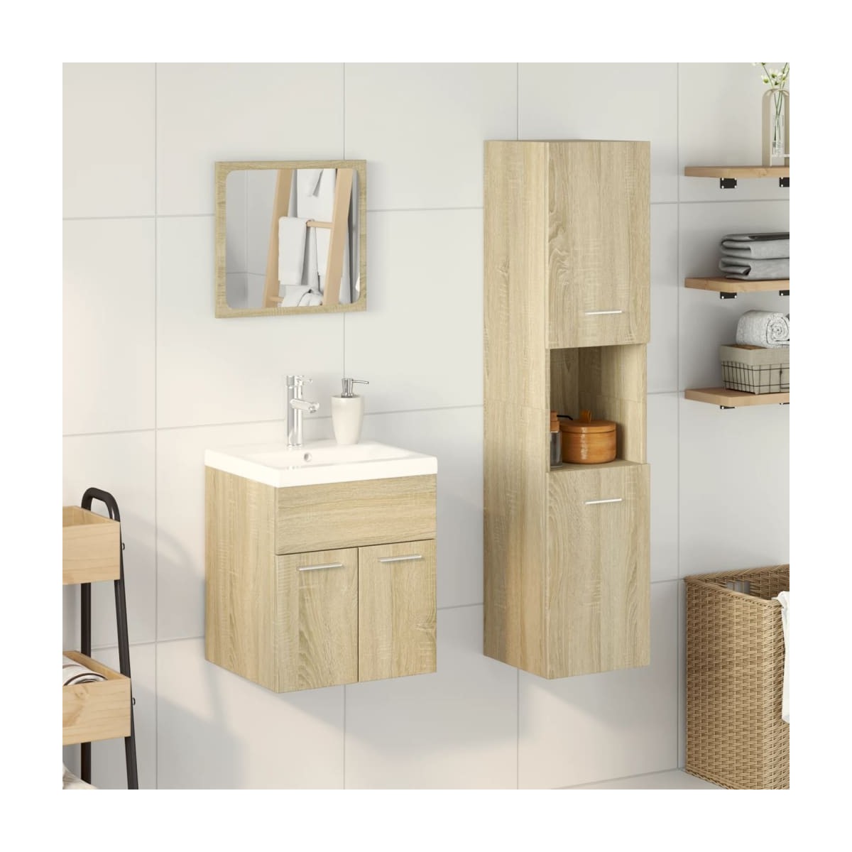 ¡Este conjunto de muebles de baño es un excelente aporte para el baño y le da un aspecto ordenado y llamativo! Material duradero:La madera de ingeniería tiene una calidad excepcional, con una superficie lisa y también con fuerza, estabilidad y resistencia a la humedad.Amplio espacio de almacenamiento: El mueble de almacenamiento ofrece un amplio espacio para acomodar fácilmente tus artículos de tocador esenciales y artículos de baño, como jabones, champú, pasta de dientes, etc.Práctico lavabo: El lavabo está equipado con un rebosadero que evacua el agua cuando se llena en exceso, por lo que no sólo sirve como utensilio de uso diario, sino también como decoración del espacio vital.Montaje en la pared: El armario de baño y el espejo de maquillaje se pueden montar en la pared para obtener un plus de espacio de almacenaje. De este modo, podrás aprovechar al máximo el espacio del suelo y mantener la zona limpia.Fácil de mantener: Gracias a su superficie lisa, el mueble de baño y el lavabo son fáciles de limpiar con un paño húmedo y requieren menos mantenimiento. Información útil:Los tornillos y los tacos para el interior de la pared no están incluidos. Recomendamos encontrar y utilizar tornillos y tacos adecuados específicamente para las paredes. Si no estás seguro, puedes consultar con un profesional. Lee y sigue cada paso de las instrucciones.