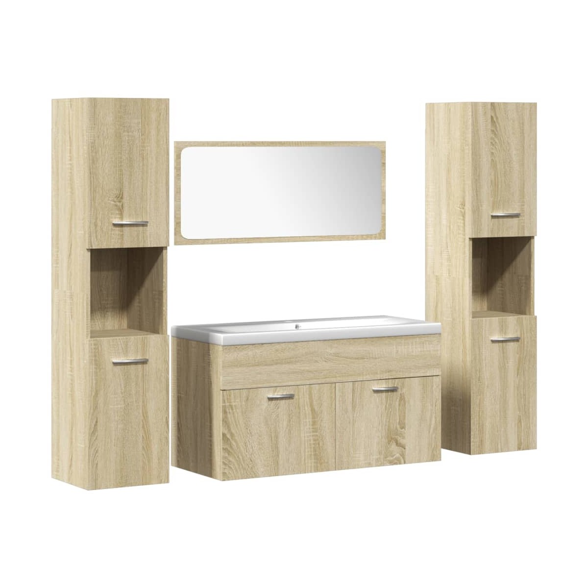 ¡Este conjunto de muebles de baño es un excelente aporte para el baño y le da un aspecto ordenado y llamativo! Material duradero:La madera de ingeniería tiene una calidad excepcional, con una superficie lisa y también con fuerza, estabilidad y resistencia a la humedad.Amplio espacio de almacenamiento: El mueble de almacenamiento ofrece un amplio espacio para acomodar fácilmente tus artículos de tocador esenciales y artículos de baño, como jabones, champú, pasta de dientes, etc.Práctico lavabo: El lavabo está equipado con un rebosadero que evacua el agua cuando se llena en exceso, por lo que no sólo sirve como utensilio de uso diario, sino también como decoración del espacio vital.Montaje en la pared: El armario de baño y el espejo de maquillaje se pueden montar en la pared para obtener un plus de espacio de almacenaje. De este modo, podrás aprovechar al máximo el espacio del suelo y mantener la zona limpia.Fácil de mantener: Gracias a su superficie lisa, el mueble de baño y el lavabo son fáciles de limpiar con un paño húmedo y requieren menos mantenimiento. Información útil:Los tornillos y los tacos para el interior de la pared no están incluidos. Recomendamos encontrar y utilizar tornillos y tacos adecuados específicamente para las paredes. Si no estás seguro, puedes consultar con un profesional. Lee y sigue cada paso de las instrucciones.
