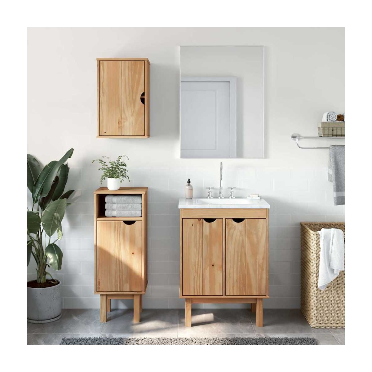 Este conjunto de muebles de baño de madera es un excelente complemento para tu cuarto de baño, ya que le da un aspecto ordenado y llamativo. Material robusto y estable: La madera maciza de pino es conocida por su resistencia y durabilidad. Sus vetas rectas y sus característicos nudos contribuyen a su encanto rústico.Amplio espacio de almacenamiento: Este mueble de baño ofrece un amplio espacio de almacenamiento para acomodar fácilmente tus artículos de tocador y baño esenciales, como jabones, champú, pasta de dientes, etc.Puerta práctica: Mantén ordenado el espacio al esconder los pequeños objetos esenciales detrás de la puerta de este mueble de baño.Fácil mantenimiento: Gracias a su superficie lisa, el armario del baño es fácil de limpiar con un paño húmedo y requiere menos mantenimiento. Información útil:Los tornillos y los tacos para el interior de la pared no están incluidos. Te recomendamos buscar y utilizar tornillos y tacos adecuados específicamente para tus paredes. Si no estás seguro, puedes consultar con un profesional. Lee y sigue cada paso de las instrucciones. Advertencia:Para evitar que vuelque, este producto debe usarse con el dispositivo de fijación a la pared suministrado.