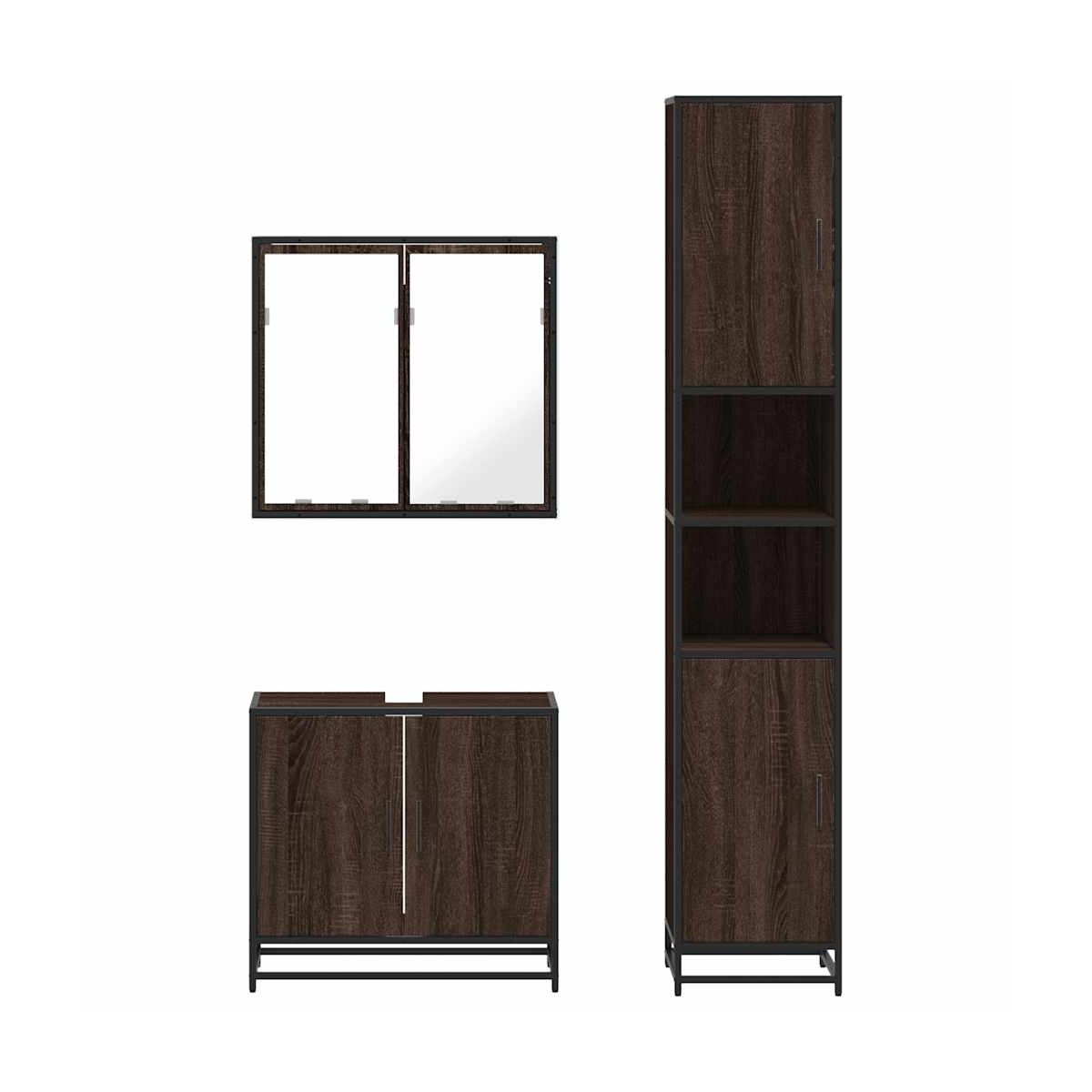¡Este elegante conjunto de muebles de baño es un excelente aporte para el baño y le da un aspecto ordenado y llamativo! Material estable y duradero: La madera de ingeniería es un material duradero y estable con una superficie lisa que es resistente a la humedad, la deformación y la rotura, lo que la convierte en una opción fiable para una variedad de proyectos.Marco estable y duradero: el marco de metal del mueble de baño realza su interior con un estilo industrial y proporciona una durabilidad, estabilidad y resistencia a la corrosión excepcionales.Amplio espacio de almacenamiento: El mueble de baño ofrece un amplio espacio para acomodar fácilmente tus artículos de tocador esenciales y artículos de baño, como jabones, champú, pasta de dientes, etc.Imagen nítida: La cara de cristal del espejo proporciona un reflejo fino y sin distorsiones, por lo que sirve para maquillarse, afeitarse o mirar si vas bien vestido antes de salir.Fácil de mantener: Gracias a su superficie lisa, el mueble de baño es fácil de limpiar con un paño húmedo y requiere menos mantenimiento. Información útil:Los tornillos y los tacos para el interior de la pared no están incluidos. Recomendamos encontrar y utilizar tornillos y tacos adecuados específicamente para las paredes. Si no estás seguro, puedes consultar con un profesional. Lee y sigue cada paso de las instrucciones. Advertencia:Para evitar que vuelque, este producto debe usarse con el dispositivo de fijación a la pared suministrado.