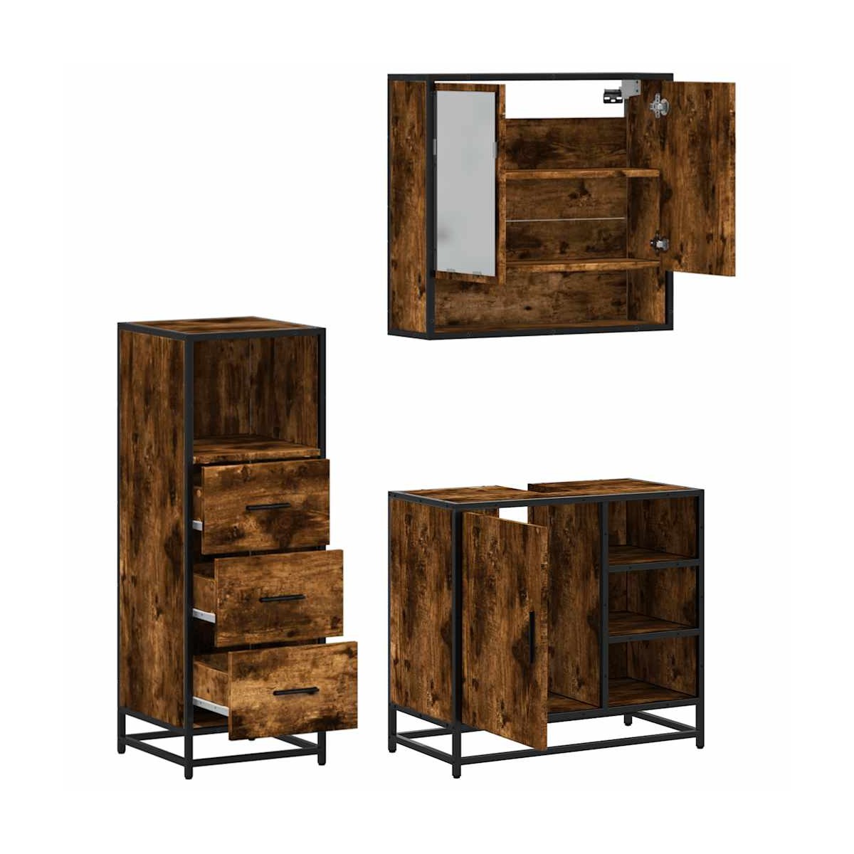 ¡Este elegante conjunto de muebles de baño es un excelente aporte para el baño y le da un aspecto ordenado y llamativo! Material estable y duradero: La madera de ingeniería es un material duradero y estable con una superficie lisa que es resistente a la humedad, la deformación y la rotura, lo que la convierte en una opción fiable para una variedad de proyectos.Marco estable y duradero: el marco de metal del mueble de baño realza su interior con un estilo industrial y proporciona una durabilidad, estabilidad y resistencia a la corrosión excepcionales.Amplio espacio de almacenamiento: El mueble de baño ofrece un amplio espacio para acomodar fácilmente tus artículos de tocador esenciales y artículos de baño, como jabones, champú, pasta de dientes, etc.Imagen nítida: La cara de cristal del espejo proporciona un reflejo fino y sin distorsiones, por lo que sirve para maquillarse, afeitarse o mirar si vas bien vestido antes de salir.Fácil de mantener: Gracias a su superficie lisa, el mueble de baño es fácil de limpiar con un paño húmedo y requiere menos mantenimiento. Información útil:Los tornillos y los tacos para el interior de la pared no están incluidos. Recomendamos encontrar y utilizar tornillos y tacos adecuados específicamente para las paredes. Si no estás seguro, puedes consultar con un profesional. Lee y sigue cada paso de las instrucciones. Advertencia:Para evitar que vuelque, este producto debe usarse con el dispositivo de fijación a la pared suministrado.