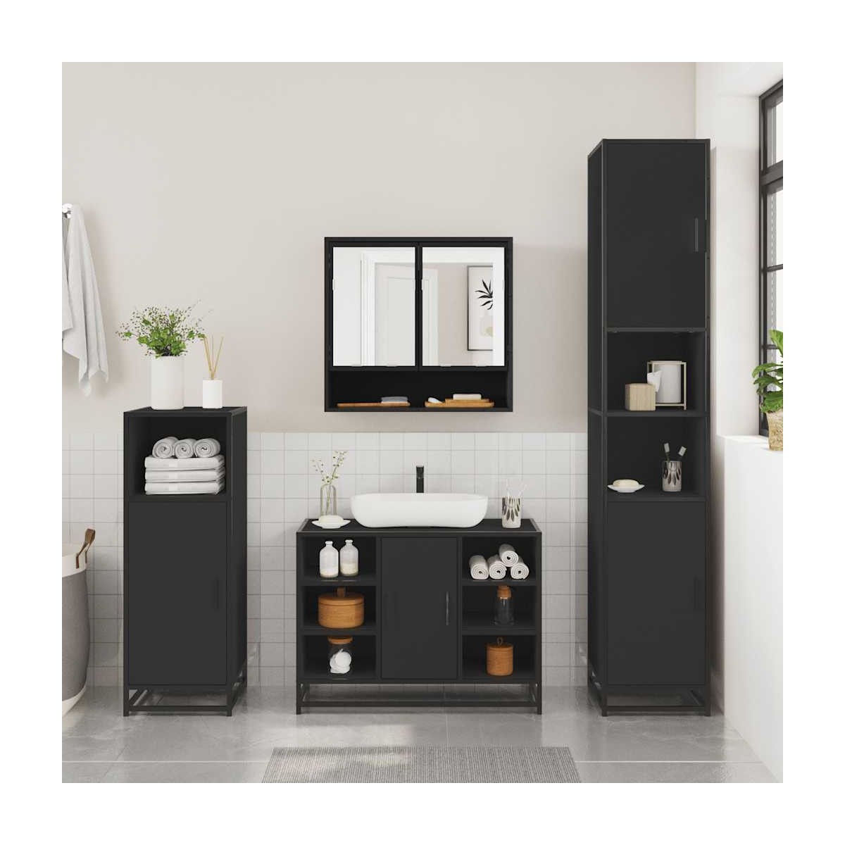 ¡Este elegante conjunto de muebles de baño es un excelente aporte para el baño y le da un aspecto ordenado y llamativo! Material estable y duradero: La madera de ingeniería es un material duradero y estable con una superficie lisa que es resistente a la humedad, la deformación y la rotura, lo que la convierte en una opción fiable para una variedad de proyectos.Marco estable y duradero: el marco de metal del mueble de baño realza su interior con un estilo industrial y proporciona una durabilidad, estabilidad y resistencia a la corrosión excepcionales.Amplio espacio de almacenamiento: El mueble de baño ofrece un amplio espacio para acomodar fácilmente tus artículos de tocador esenciales y artículos de baño, como jabones, champú, pasta de dientes, etc.Imagen nítida: La cara de cristal del espejo proporciona un reflejo fino y sin distorsiones, por lo que sirve para maquillarse, afeitarse o mirar si vas bien vestido antes de salir.Fácil de mantener: Gracias a su superficie lisa, el mueble de baño es fácil de limpiar con un paño húmedo y requiere menos mantenimiento. Información útil:Los tornillos y los tacos para el interior de la pared no están incluidos. Recomendamos encontrar y utilizar tornillos y tacos adecuados específicamente para las paredes. Si no estás seguro, puedes consultar con un profesional. Lee y sigue cada paso de las instrucciones. Advertencia:Para evitar que vuelque, este producto debe usarse con el dispositivo de fijación a la pared suministrado.