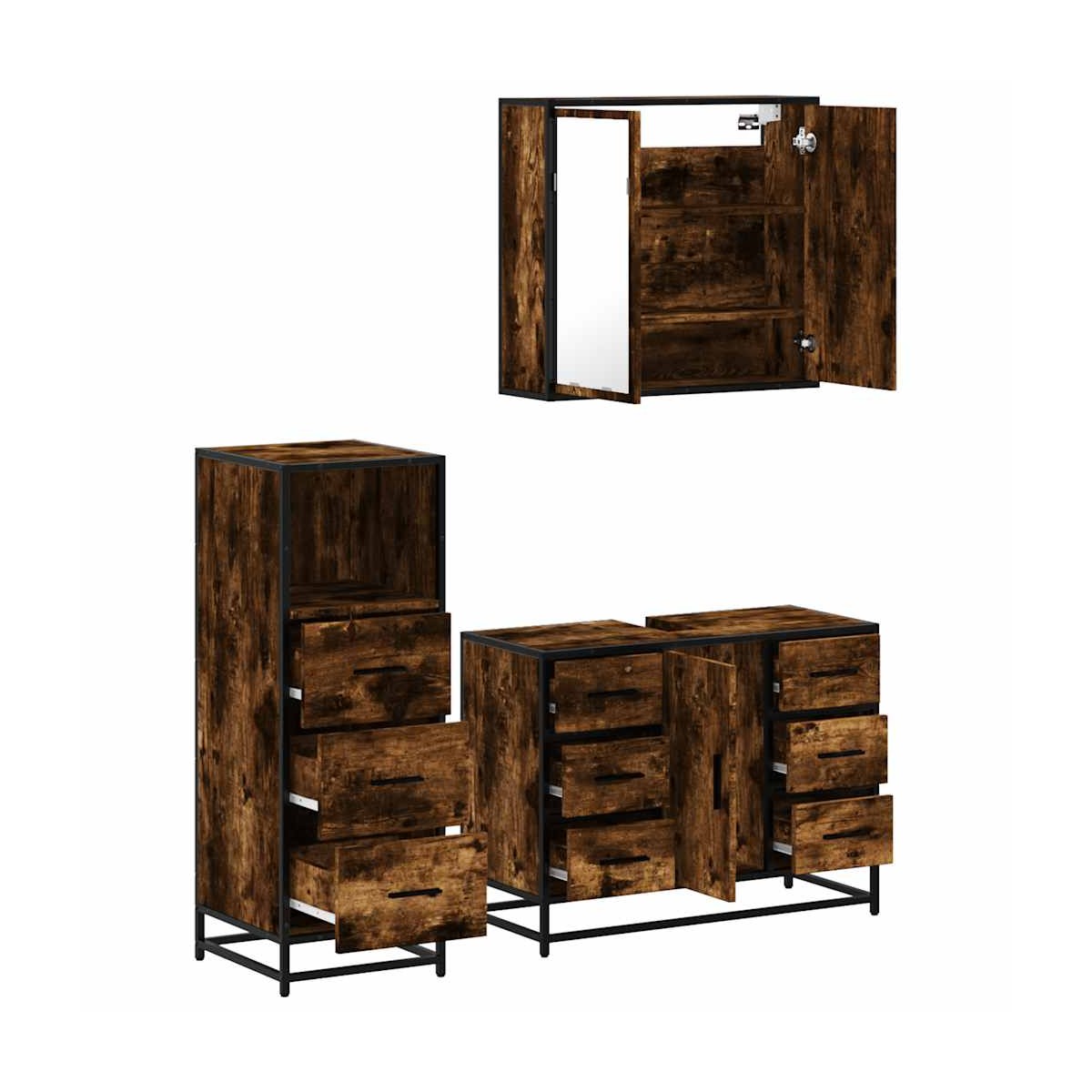 ¡Este elegante conjunto de muebles de baño es un excelente aporte para el baño y le da un aspecto ordenado y llamativo! Material estable y duradero: La madera de ingeniería es un material duradero y estable con una superficie lisa que es resistente a la humedad, la deformación y la rotura, lo que la convierte en una opción fiable para una variedad de proyectos.Marco estable y duradero: el marco de metal del mueble de baño realza su interior con un estilo industrial y proporciona una durabilidad, estabilidad y resistencia a la corrosión excepcionales.Amplio espacio de almacenamiento: El mueble de baño ofrece un amplio espacio para acomodar fácilmente tus artículos de tocador esenciales y artículos de baño, como jabones, champú, pasta de dientes, etc.Imagen nítida: La cara de cristal del espejo proporciona un reflejo fino y sin distorsiones, por lo que sirve para maquillarse, afeitarse o mirar si vas bien vestido antes de salir.Fácil de mantener: Gracias a su superficie lisa, el mueble de baño es fácil de limpiar con un paño húmedo y requiere menos mantenimiento. Información útil:Los tornillos y los tacos para el interior de la pared no están incluidos. Recomendamos encontrar y utilizar tornillos y tacos adecuados específicamente para las paredes. Si no estás seguro, puedes consultar con un profesional. Lee y sigue cada paso de las instrucciones. Advertencia:Para evitar que vuelque, este producto debe usarse con el dispositivo de fijación a la pared suministrado.