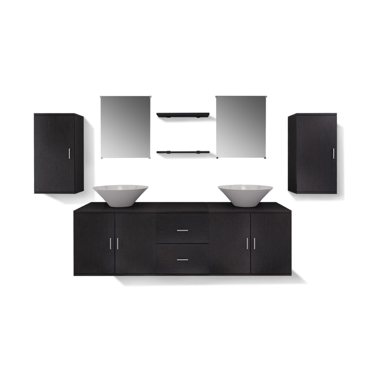 Este conjunto completo, compuesto por 1 mueble de lavabo de pared, 2 armarios de pared, 2 espejos, 2 estantes y 2 lavabos, será un gran aporte a tu baño, optimizando tu espacio y añadiendo estilo....