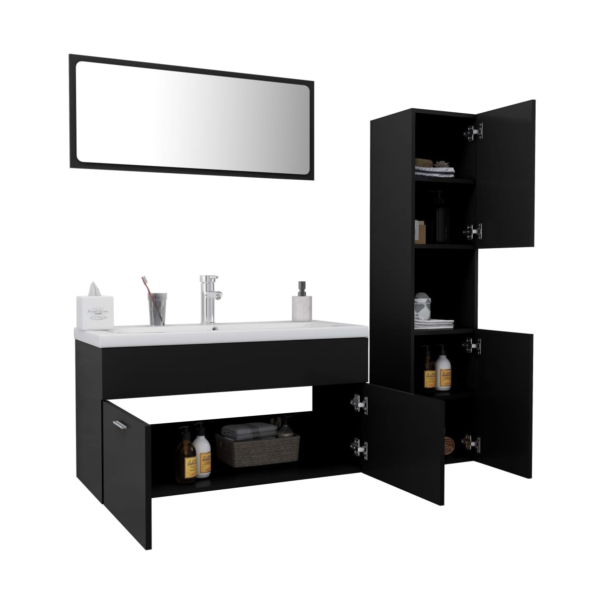 Con este elegante set de muebles de baño, podrás crear espacio de almacenamiento extra para tu baño con un look llamativo y ordenado. Diseño elegante: Las líneas limpias y el diseño elegante se integran perfectamente en el baño. El conjunto de muebles se compone de un mueble lavabo con lavabo, un mueble alto y un espejo. Este elegante mueble para lavabo tiene 1 compartimento y encaja perfectamente debajo del lavabo, lo que hace que el almacenamiento en el baño sea muy práctico. Hecho de cerámica, el lavabo no sólo puede servir como recipiente de uso diario, sino también como adorno en tu hogar. Gracias a su diseño vanguardista y moderno, este lavabo se adaptará sin duda a cualquier decoración. También está equipado con un agujero de desbordamiento para que fluya el agua cuando se llena demasiado. El mueble alto cuenta con un total de 5 compartimentos y 2 puertas, lo que ofrece un amplio espacio para guardar artículos en el baño. El espejo también añade una apariencia excelente a la decoración de tu hogar. Además, este set de baño es fácil de limpiar con un paño húmedo. Ten en cuenta: El grifo y el desagüe no están incluidos en la entrega.