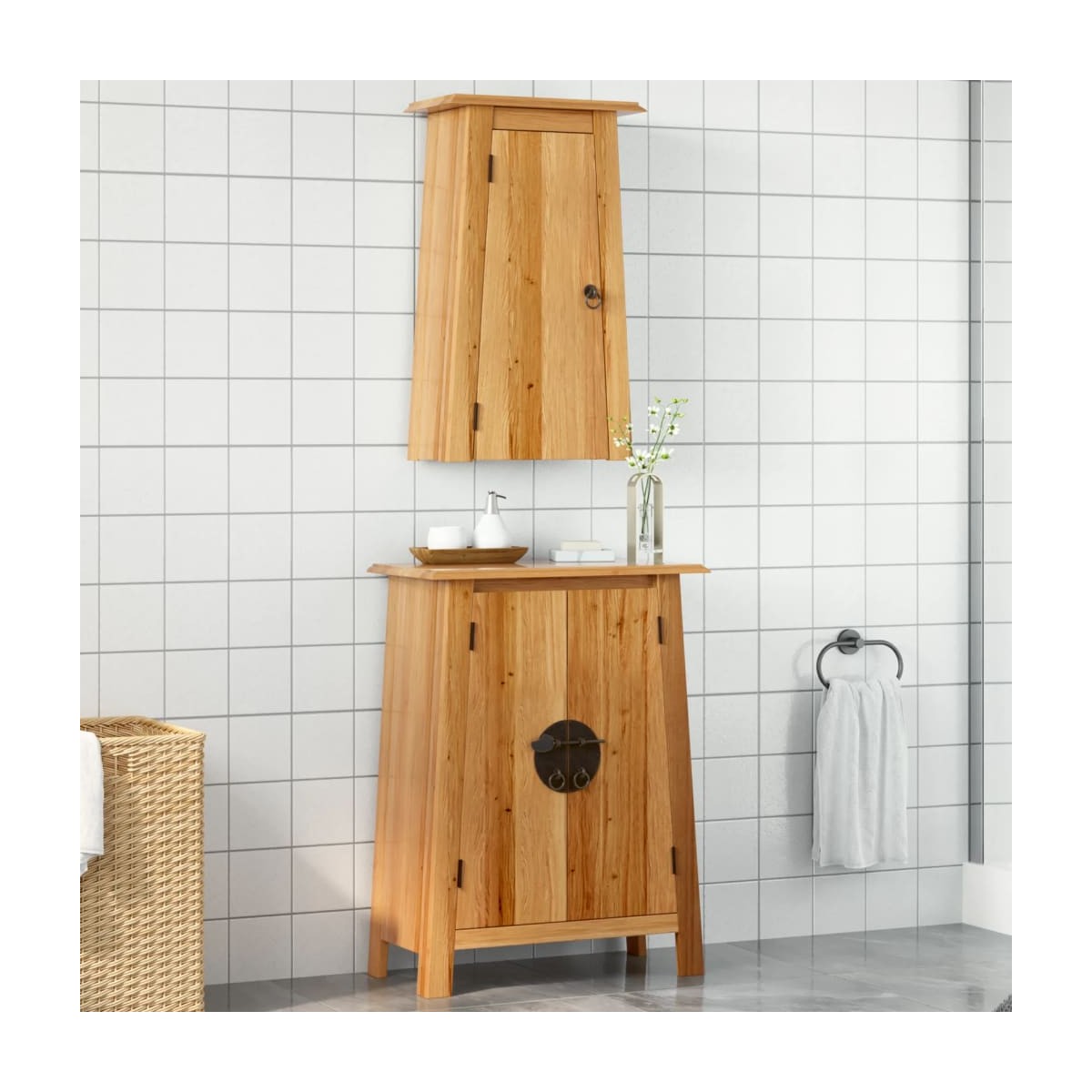¡Este conjunto de muebles de baño es un excelente aporte para el baño y le da un aspecto ordenado y llamativo! Madera de pino maciza: La madera de pino maciza es un bonito material natural. La madera de pino tiene vetas rectas, y los nudos dan al material su distintivo aspecto rústico.Amplio espacio de almacenamiento: El mueble de baño ofrece un amplio espacio para acomodar fácilmente tus artículos de tocador esenciales y artículos de baño, como jabones, champú, pasta de dientes, etc.Cómodas asas: Las asas metálicas te permiten abrir fácilmente el armario de almacenamiento del baño para coger lo que quieras.Función de montaje en la pared: El armario de pared del baño se puede montar en la pared para obtener espacio de almacenamiento adicional. De esa forma, puedes liberar espacio en el piso y tener tu ambiente ordenado y limpio. Advertencia:Para evitar que vuelque, este producto debe usarse con el dispositivo de fijación a la pared (no incluido). Información útil:Cada artículo es único, con variaciones de color y veta. La entrega es aleatoria garantizando la exclusividad y la individualidad del producto.