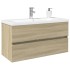 Este elegante conjunto de muebles de baño, que cuenta con un amplio espacio de almacenaje, es un gran aporte para el cuarto de baño, ¡y le dará un aspecto ordenado y llamativo! Material duradero: La madera de ingeniería es de una calidad excepcional con una superficie lisa y también presenta fuerza, estabilidad y resistencia a la humedad.Material duradero: El lavabo de baño, hecho de cerámica, tiene una superficie duradera que resiste frente a impactos, manchas y arañazos, con el fin de garantizar un brillo duradero.Amplio espacio de almacenamiento: El armario de baño ofrece un amplio espacio de almacenamiento para mantener diversos artículos esenciales diarios bien organizados y al alcance de la mano.Diseño que ahorra espacio: Los muebles de baño se pueden montar en la pared para agregar espacio de almacenamiento extra. De esa forma, puedes liberar espacio en el piso y tener tu ambiente ordenado y limpio. Información útil:Los tornillos y los tacos para el interior de la pared no están incluidos. Te recomendamos buscar y utilizar tornillos y tacos adecuados específicamente para tus paredes. Si no estás seguro, puedes consultar con un profesional. Lee y sigue cada paso de las instrucciones.
