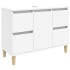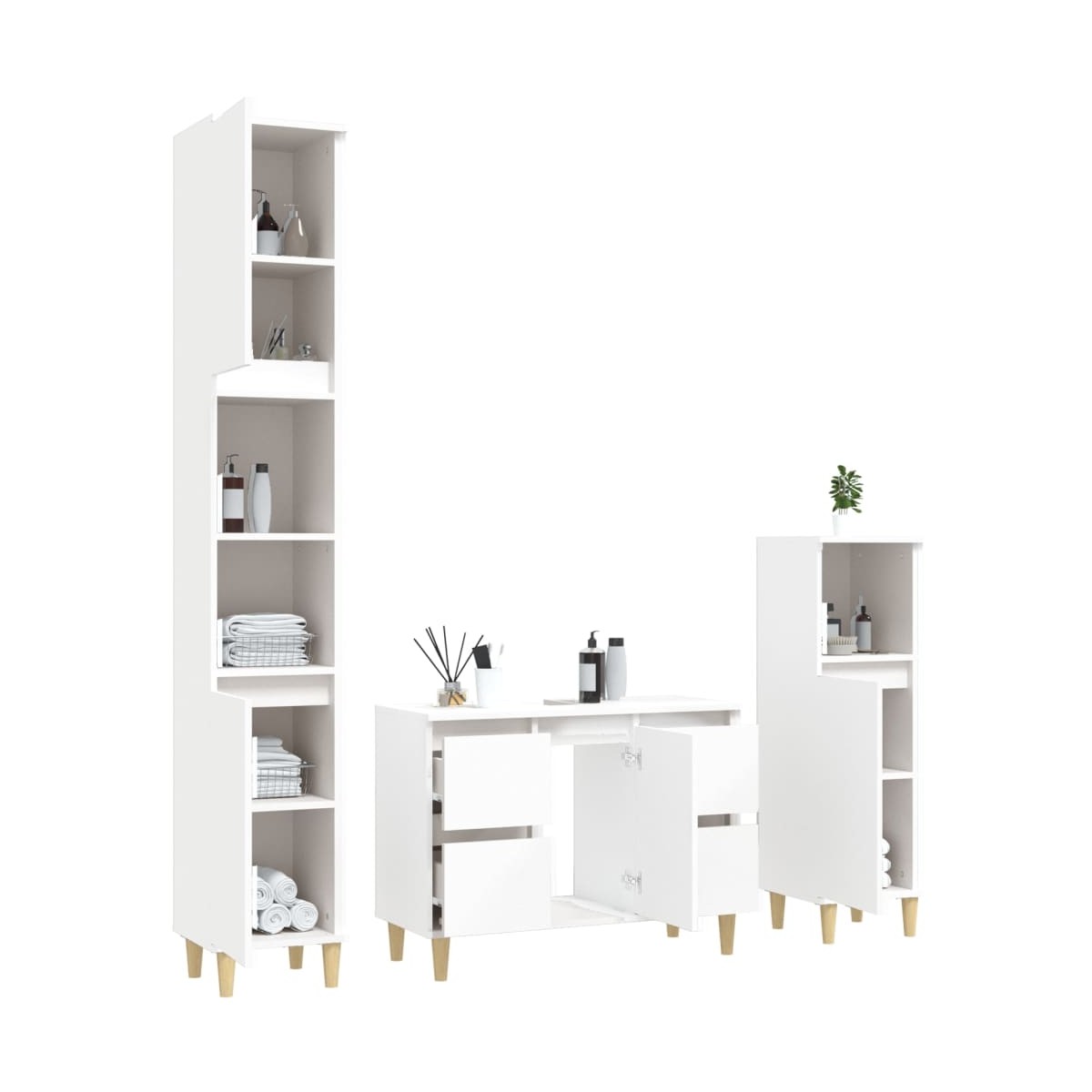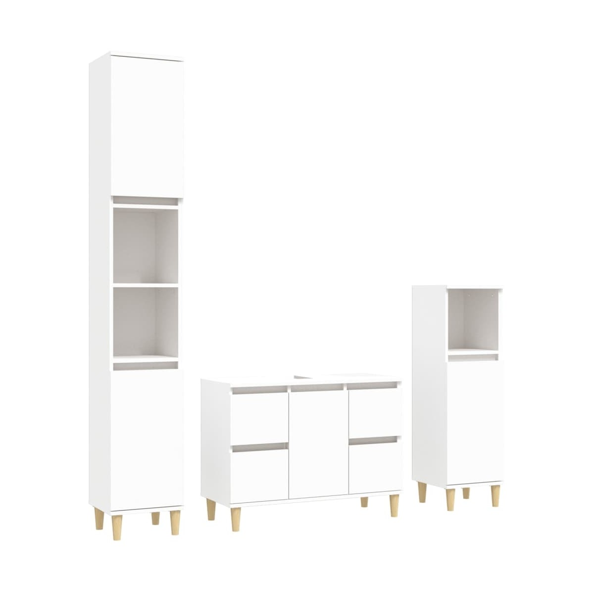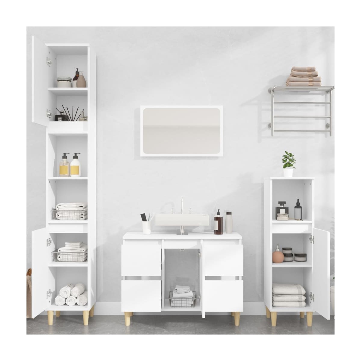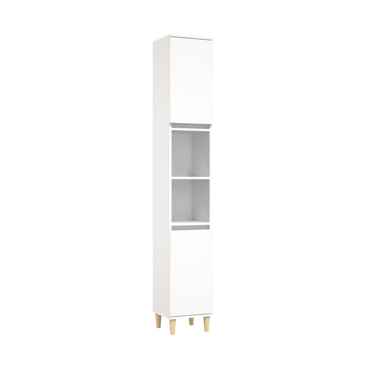 Este elegante armario de baño, que cuenta con un amplio espacio de almacenamiento, es un gran aporte para tu cuarto de baño, ¡le dará un aspecto ordenado y llamativo! Material duradero: La madera contrachapada tiene una calidad excepcional, con una superficie lisa y también cuenta con fuerza, estabilidad y resistencia a la humedad.Amplio espacio de almacenaje: Estos muebles de baño ofrecen un amplio espacio de almacenaje para mantener los artículos de baño bien organizados.Patas de madera: Las patas de madera maciza de eucalipto confieren al mobiliario de baño un aspecto natural y agradable, al mismo tiempo que garantizan su estabilidad.Superficie fácil de limpiar: El mueble de baño es fácil de limpiar con un paño húmedo.Diseño elegante: Las líneas limpias y el diseño elegante se integran perfectamente en el baño. Advertencia:Para evitar que vuelque, este producto debe usarse con el dispositivo de fijación a la pared incluido. Información útil:Los tornillos y los tacos para el interior de la pared no están incluidos. Recomendamos encontrar y utilizar tornillos y tacos adecuados específicamente para las paredes. Si no estás seguro, puedes consultar con un profesional. Lee y sigue cada paso de las instrucciones.