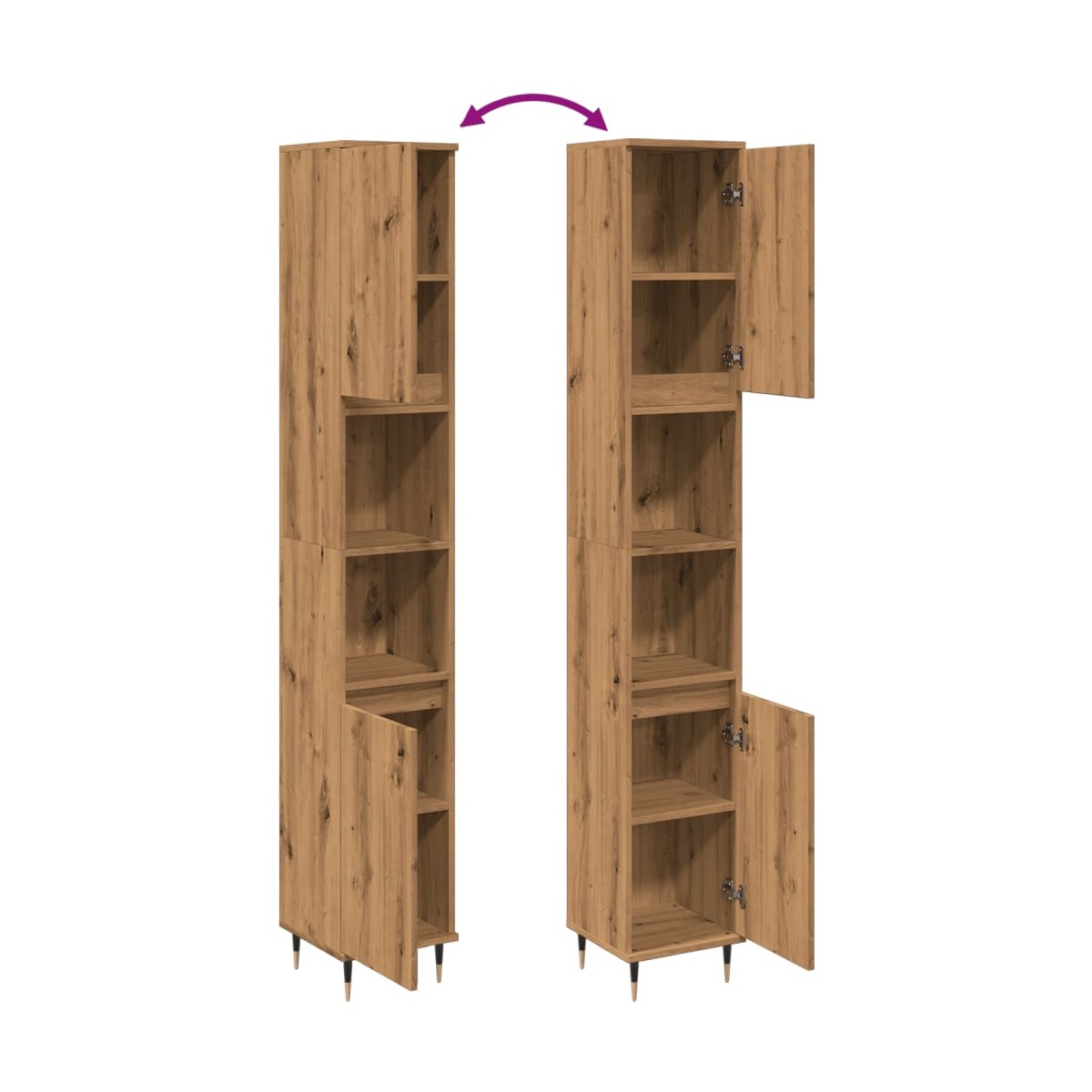 Este armario de baño está destinado a ser un gran aporte para el cuarto de baño, ¡le dará un aspecto ordenado y llamativo!Material duradero: La madera contrachapada tiene una calidad excepcional, con una superficie lisa y también cuenta con fuerza, estabilidad y resistencia a la humedad.Amplio espacio de almacenaje: El mueble de baño tiene 4 compartimentos con puertas y 2 estantes abiertos, por lo que ofrece diversas opciones de almacenaje y espacio extra para guardar objetos en el cuarto de baño.Instalación flexible de las puertas: Puedes instalar las puertas en el lado izquierdo o derecho, según prefieras.Patas de hierro: Las patas de hierro dan un estilo industrial a la casa, además de garantizar la estabilidad del mueble de almacenaje para el baño.Advertencia:Para evitar que vuelque, este producto debe usarse con el dispositivo de fijación a la pared (no incluido).Información útil:Los tornillos y los tacos para el interior de la pared no están incluidos. Recomendamos encontrar y utilizar tornillos y tacos adecuados específicamente para las paredes. Si no estás seguro, puedes consultar con un profesional. Lee y sigue cada paso de las instrucciones.