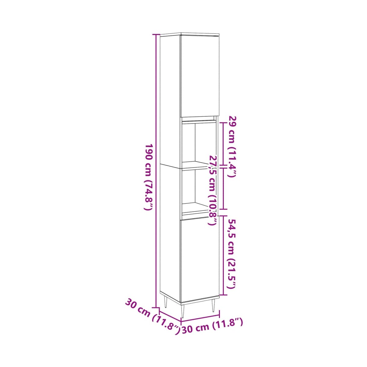 - Dimensiones: 30 x 30 x 190 cm (ancho x profundo x alto)